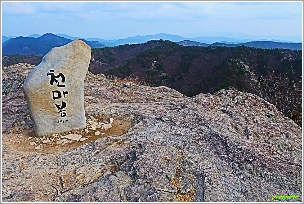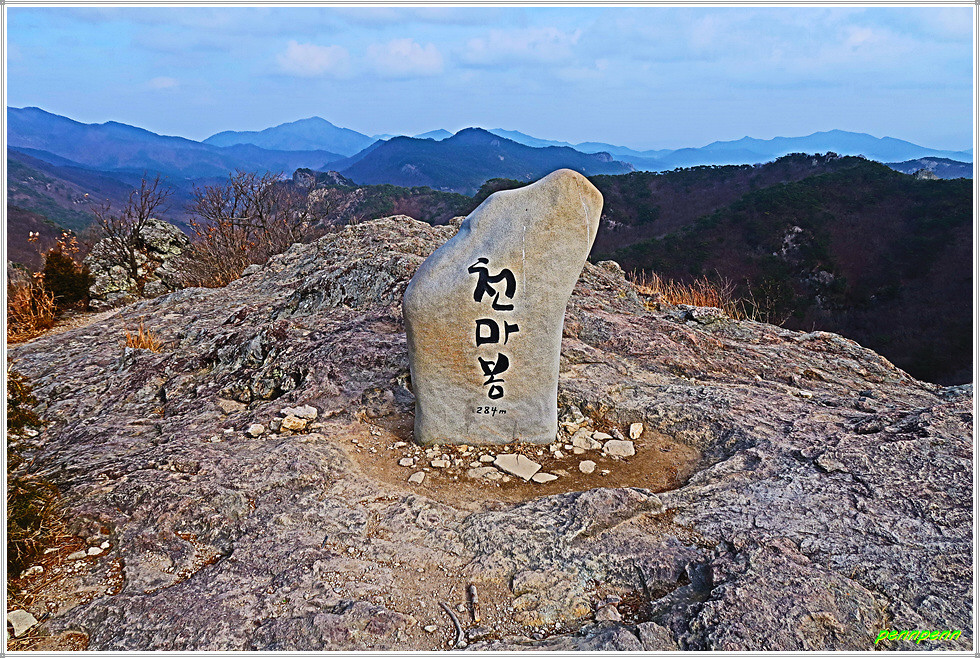 도솔암 남쪽 에 자리 잡은 선운산 천마봉은 기상이 준엄하여 장군봉이라고도 합니다. 천마봉은 말이 하늘을 뛰어오르는 형상을 지녔다고 해서 나온 말로 선운산 능선 중 인접한 낙조대와 함께 방문객이 가장 많이 다녀가는 관광명소 중 하나입니다. 진흥골을 따라 도솔암 입구에 도착하면 보이는 하늘을 찌를 듯한 절벽이 바로 천마봉입니다. 천마봉에 서면 진흥골과 선운천의 비경이 발아래 내려다보이며 선운사 안쪽 풍경을 볼 수 있습니다. 필자가 6년 전 이것에 왔을 때는 천마봉 동판 밖에 없었는데 이제는 듬직한 표석이 세워져 있어 인증사진 모델이 되어주고 있군요.