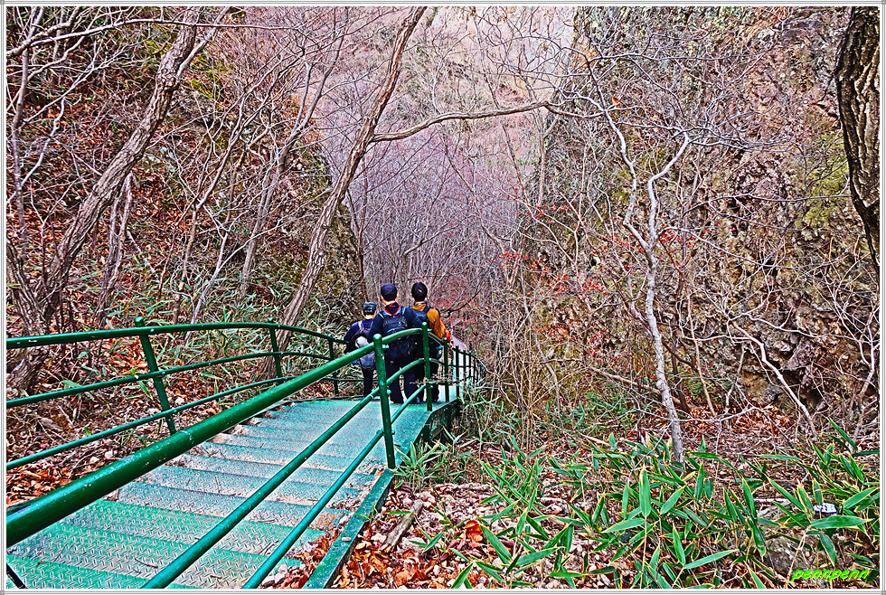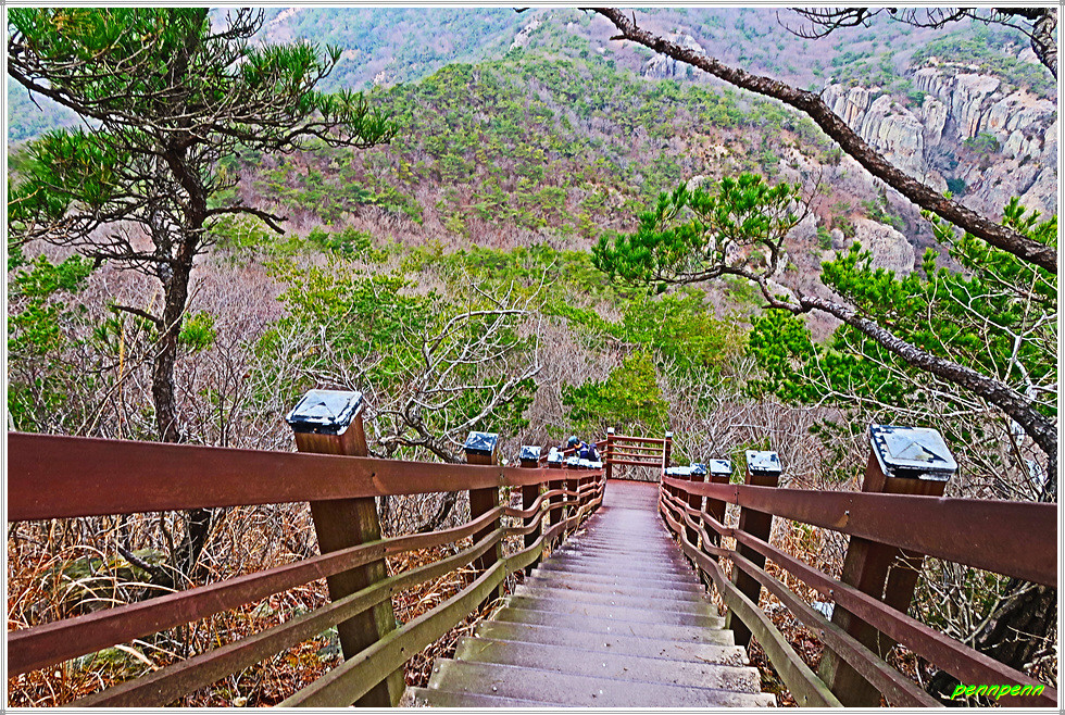 여기서 두 번째로 내려서는 철계단과 나무계단은 그 경사도가 장난이 아니므로 노약자는 이용을 자제해야할 것입니다. 선운산 낙조대와 천마봉은 서해랑길 고창 42코스에 포함되어 있으며, 선운산을 오르는 이들도 반드시 찾는 명소입니다.