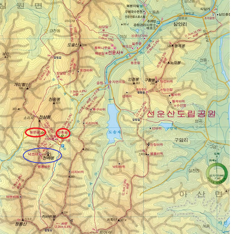 그런데 선운산에는 옛 전설을 간직한 진흥굴과 용문굴이 있음을 보통사람들은 잘 모르지만 두 개의 굴은 각각 선운사와 도솔암의 창건설화와 관련이 있는 명소입니다. 선운계곡의 공영주차장 및 상가지구와 생태숲을 지나면 선운사 일주문입니다. 선운천을 따라 안으로 진입하면서 선운사를 지나 도솔암 쪽으로 가노라면 우측에 천연기념물로 지정된 장사송(진흥송)이 있는데 장사송 우측 암벽에 있는 굴이 바로 진흥굴입니다.