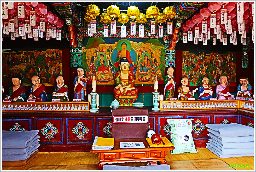 극락보전을 뒤로하고 위쪽으로 오르면 나한전입니다. 나한전은 석가모니불과 그 제자들을 모시는 법당으로, 보통 석가모니불과 16나한을 모신 응진전(應眞殿)과 석가삼존을 중심으로 500인의 아라한을 모신 오백나한전(五百羅漢殿)으로 크게 나눌 수 있습니다.