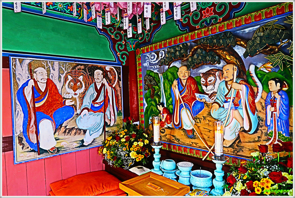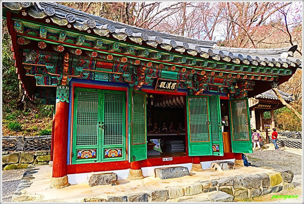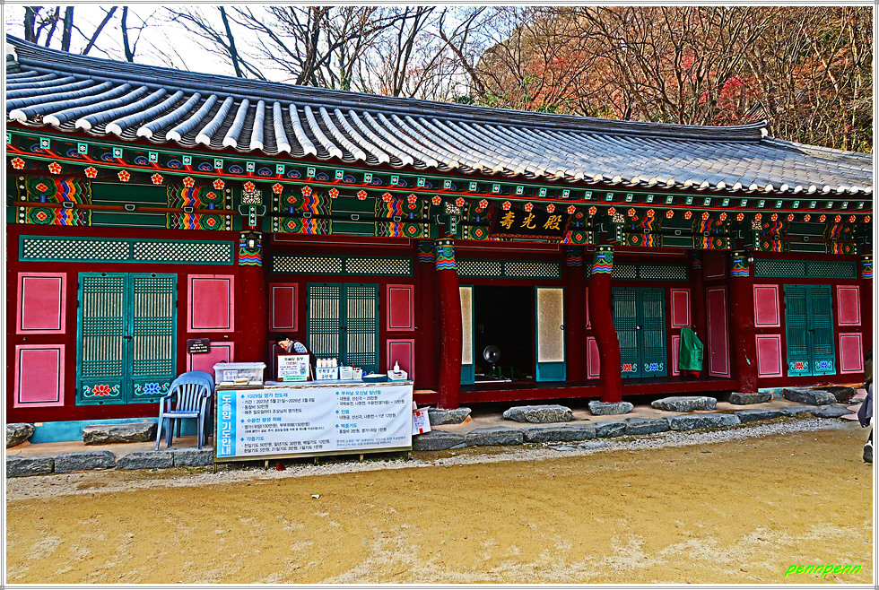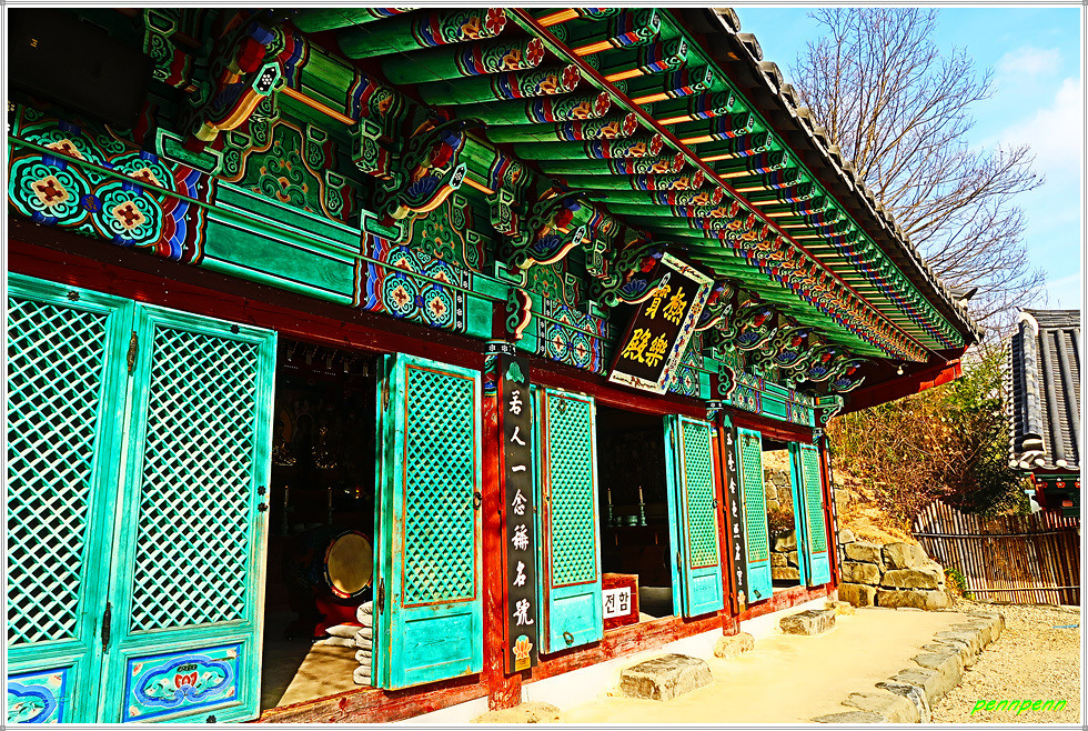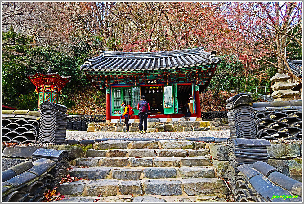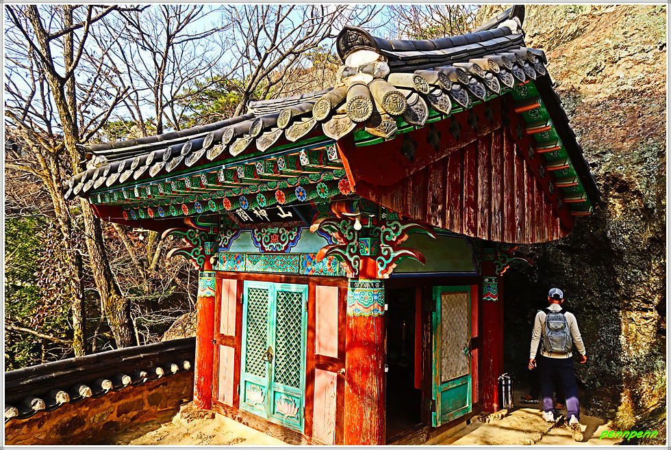 내원궁 뒤쪽에는 산신각이 있군요. 산신각은 사찰에서 산신을 봉안하는 불교건축물로 호랑이와 노인의 모습으로 묘사한 산신을 봉안하거나, 이를 탱화(幀畫)로 도상화한 그림만을 모시기도 합니다. 우리나라에서 불교가 대중화되기 시작한 것은 삼국시대부터이지만 산신각이 세워진 것은 조선 중기 이후부터라고 하는군요.