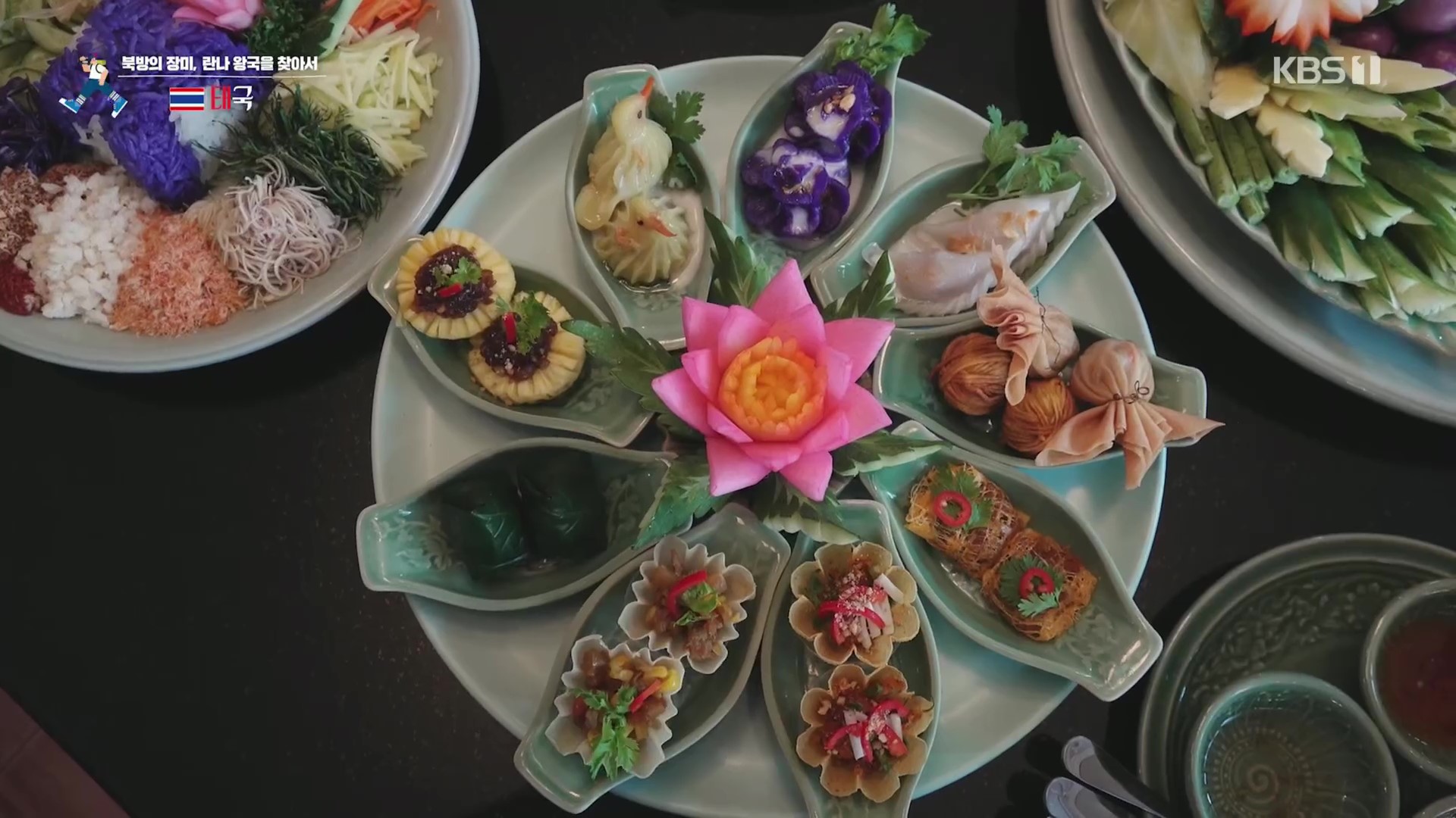 어느 전통식당에서는 태국왕실에서 먹었던 음식들을 판매합니다. 밥상이 정말 화려합니다. 음식 하나하나가 모두 예술작품 같습니다. 평범한 요리도 화려하게 장식하는 게 왕실요리의 특징인데 이런 장식은 왕실의 식탁에서만 허락되었습니다.