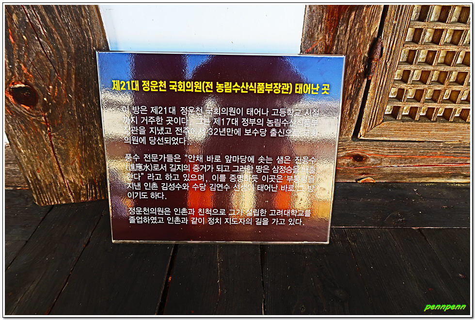 인촌마을에는 인촌 김성수(金性洙)와 수당 김연수(金䄵洙) 선생의 생가가 있다는 이정표가 있는데, 인촌은 원래 마을이름이지만 김성수 선생이 호로 사용한 것입니다. 생가 입구에는 수령 231년의 보호수 느티나무와 수령 264년의 보호수 소나무가 고고한 자태를 뽐내고 있습니다.