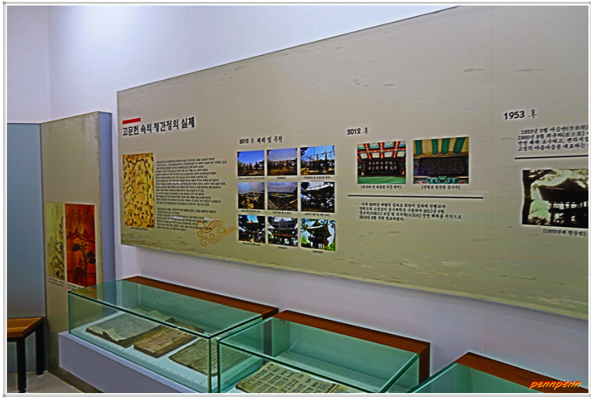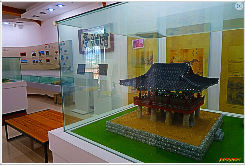 청간정 입구에는 “관동팔경 수일경 청간정”이라는 간판이 세워져 있는데요. 주차장 안으로 들어서면 좌측에 청간정 자료전시관이 있습니다. 이곳에는 청간정의 역사, 현판, 건축양식, 모형을 비롯해 이와 관련된 역사적인 자료를 전시하고 있군요.