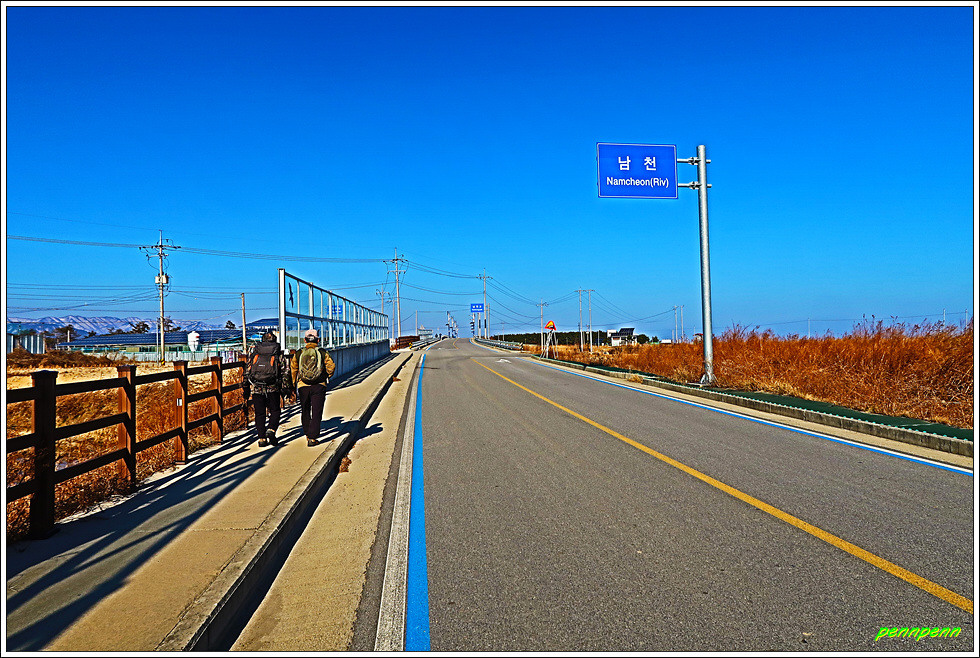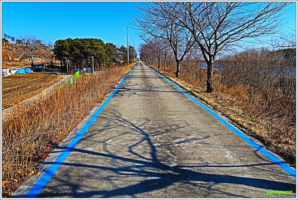 오늘 16km를 걷는데 3시간 20분이 소요되었습니다. 정상 코스로 걸었는데도 원래 거리보다 2km가 짧은 것은 원래 거리의 오류인듯 합니다. 거리에 비해 시간이 단축된 것은 전 구간이 평지였고 날씨가 상당히 차서 중간에 휴식을 전혀 하지 못한 탓입니다. 이 길은 동해안 해파랑길 48코스와 거의 겹쳐 3년 전 답사했던 길을 복습하면서 다시 걸었습니다. 날씨가 맑아서 서쪽으로 펼쳐지는 진부령-향로봉 능선의 멋진 설경을 감상한 멋진 발걸음이었습니다.