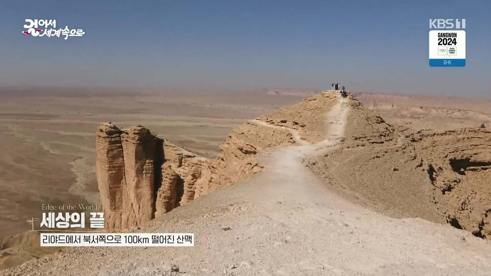 알드카 대추야자농장에서 만난 대추야자는 키가 최고 30m로 100년 동안 수확이 가능한 매우 중요한 식품입니다. 세상의 끝은 라야드에서 북서쪽으로 100km 위치에 있는 산맥으로 사막 위에 생긴 경이로운 절벽을 말합니다. 사우디의 그랜드 캐니언이라고 불리는 이곳은 병풍처럼 이어진 절벽이 장관입니다.