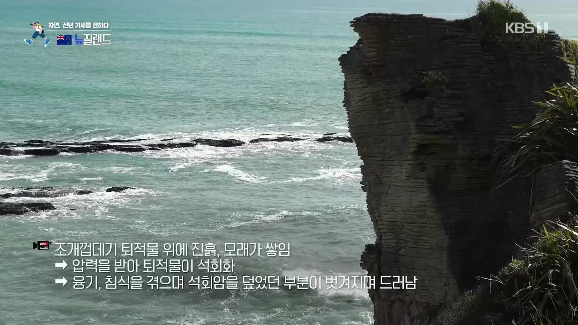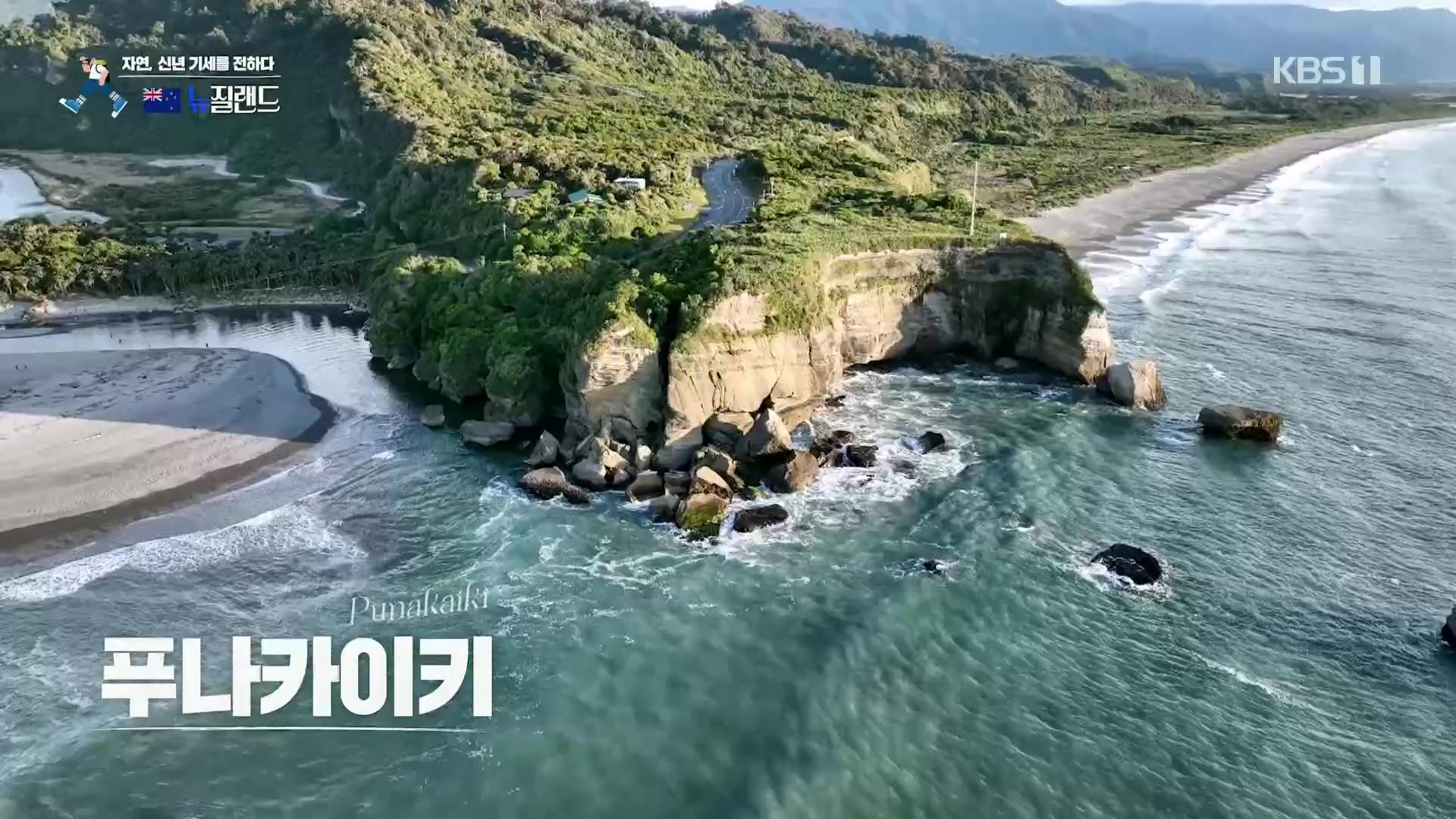 푸나카이키는 뉴질랜드에서 가장 유명한 지질명소입니다. 3,500만 년전 이 바위는 바다 밑 조개껍데기더미였지만 토양이 쌓인 후 융기 및 침식으로 이런 시루떡모양의 팬케이크 바위와 블로홀을 만들었습니다. 이곳에는 거인, 오징어, 쥐 형상의 바위를 볼 수 있습니다.