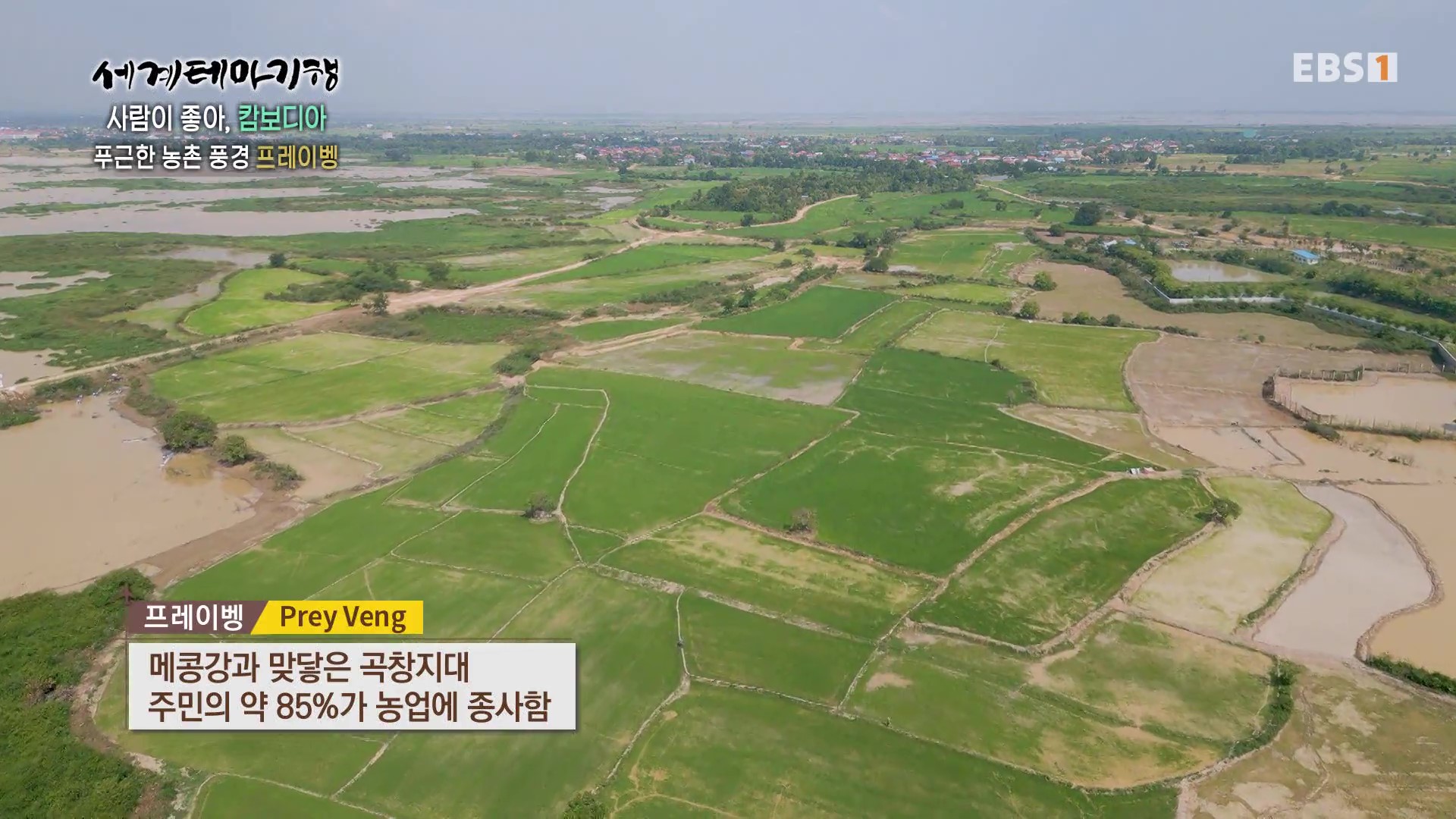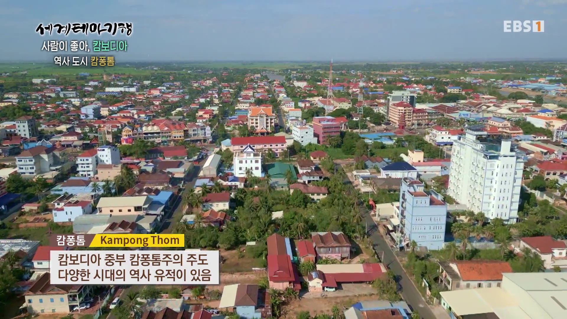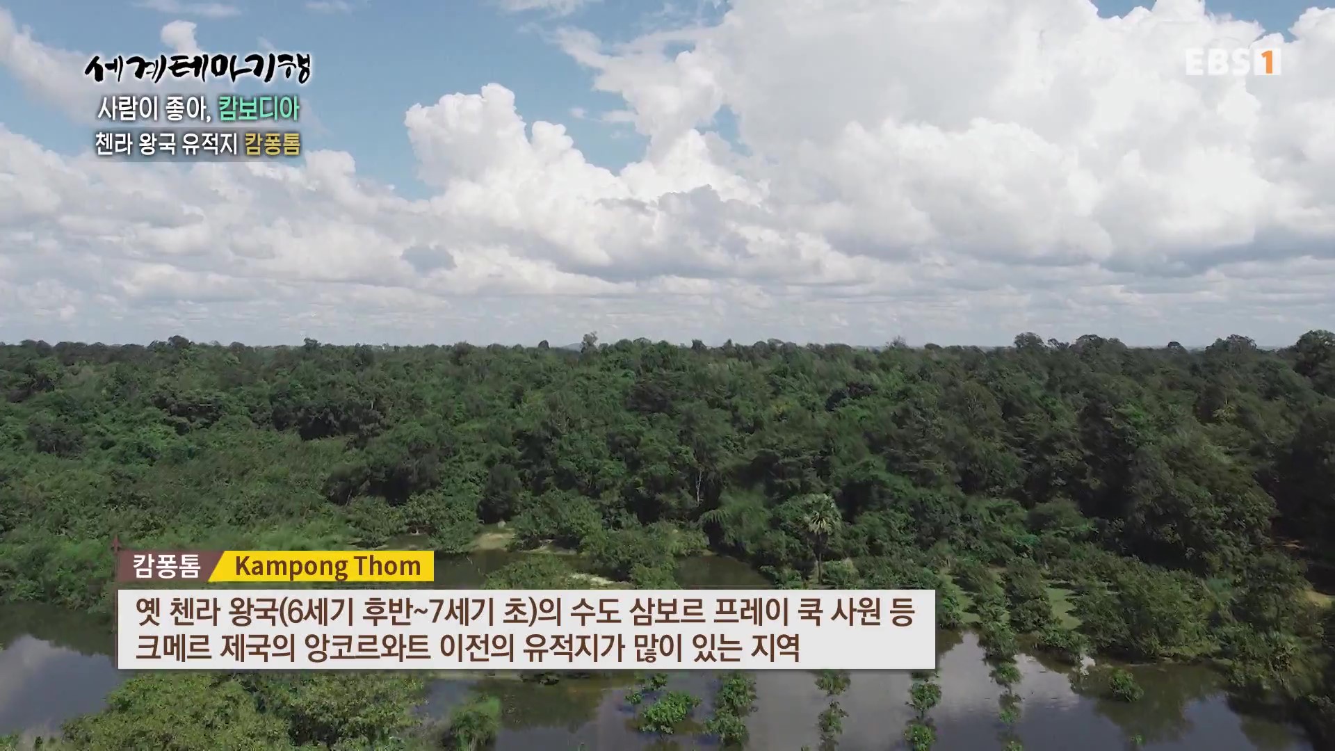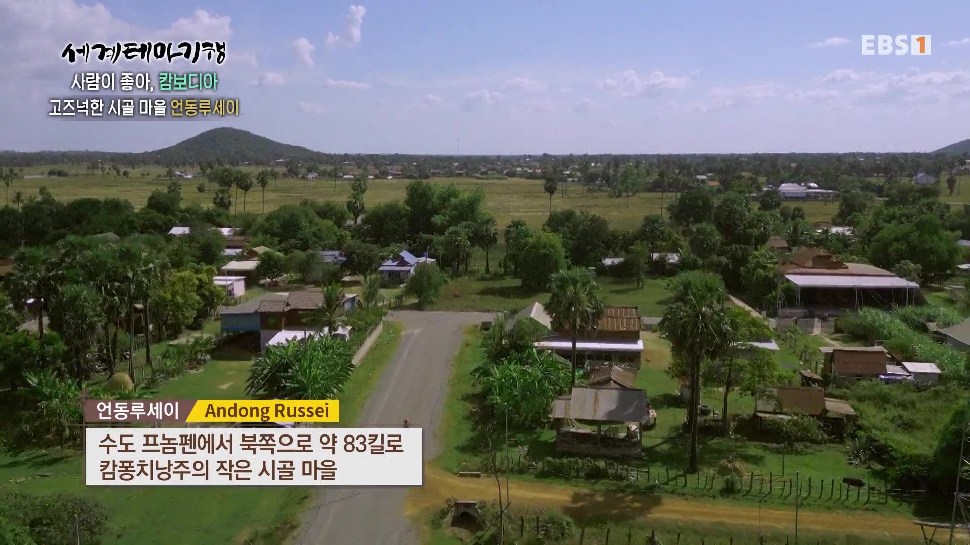 <EBS 세계테마기행>은 안방에 편안하게 앉아서 세계의 명소들을 체험할 수 있는 수준 높은 교양프로그램입니다. 각 방면에 걸쳐 다양한 지식을 가진 전문가가 출연해 실시하는 해설을 따라가노라면 실제로 해외여행을 하는 것 같은 착각에 빠지기도 합니다. 2024년 2월 초순(2024. 2. 5∼2. 8)에는 “세계테마기행, 사람이 좋아-캄보디아”편이 방영되었습니다. 캄보디아의 국토면적은 한반도의 80%, 인구는 1,712만 명, 수도는 프놈펜입니다.