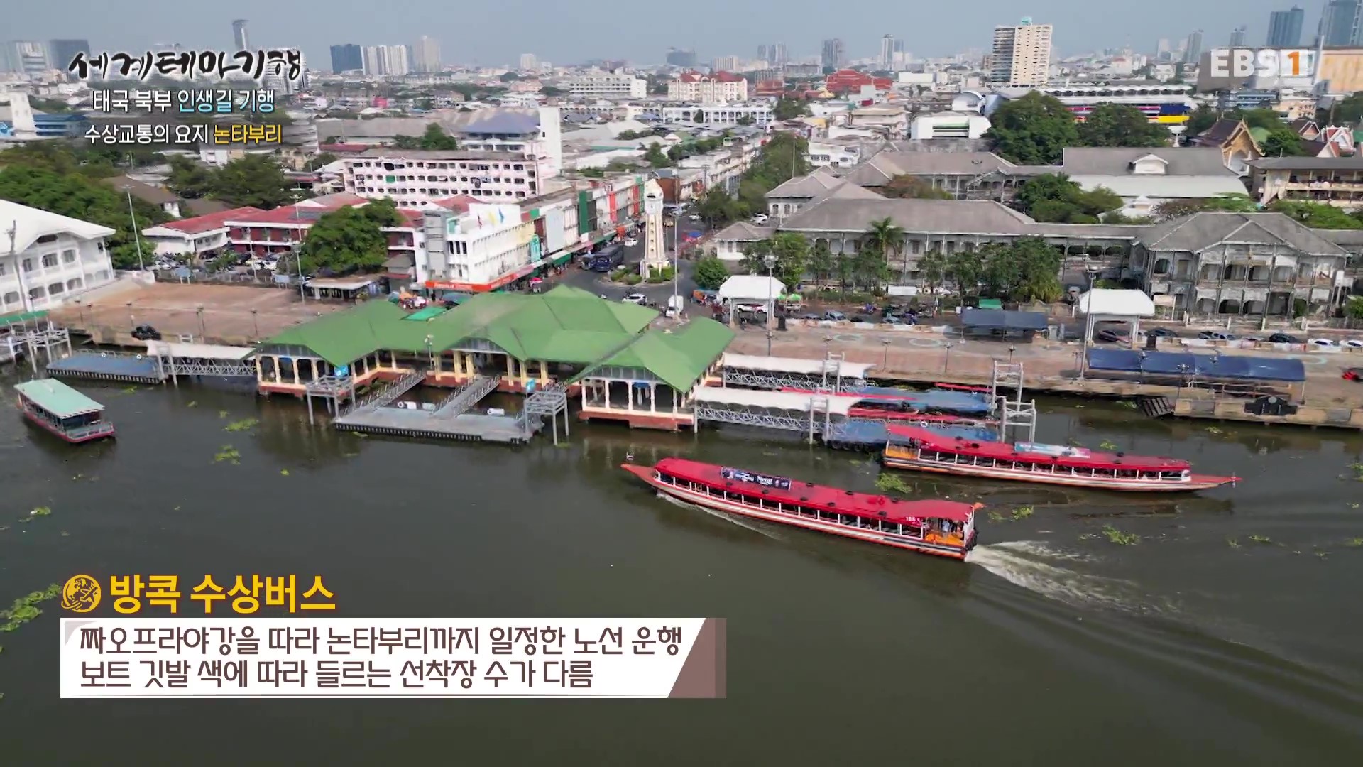 논타부리는 방콕 근교 도시로 짜오프라야강을 중심으로 수많은 운하가 연결된 수상교통의 중심지입니다. 400년 이상의 역사를 자랑하는 이곳은 기름진 땅으로 방콕수상버스가 일정한 노선을 운행합니다. 수상버스를 타면 왕궁과 사원 등 주요 명소와도 연결됩니다. 태국 국민간식인 길거리 음식 무삥(돼지고기 숯불 불고기)은 어디서나 먹을 수 있는 영양식입니다. 고등어찜도 국민반찬이지요.