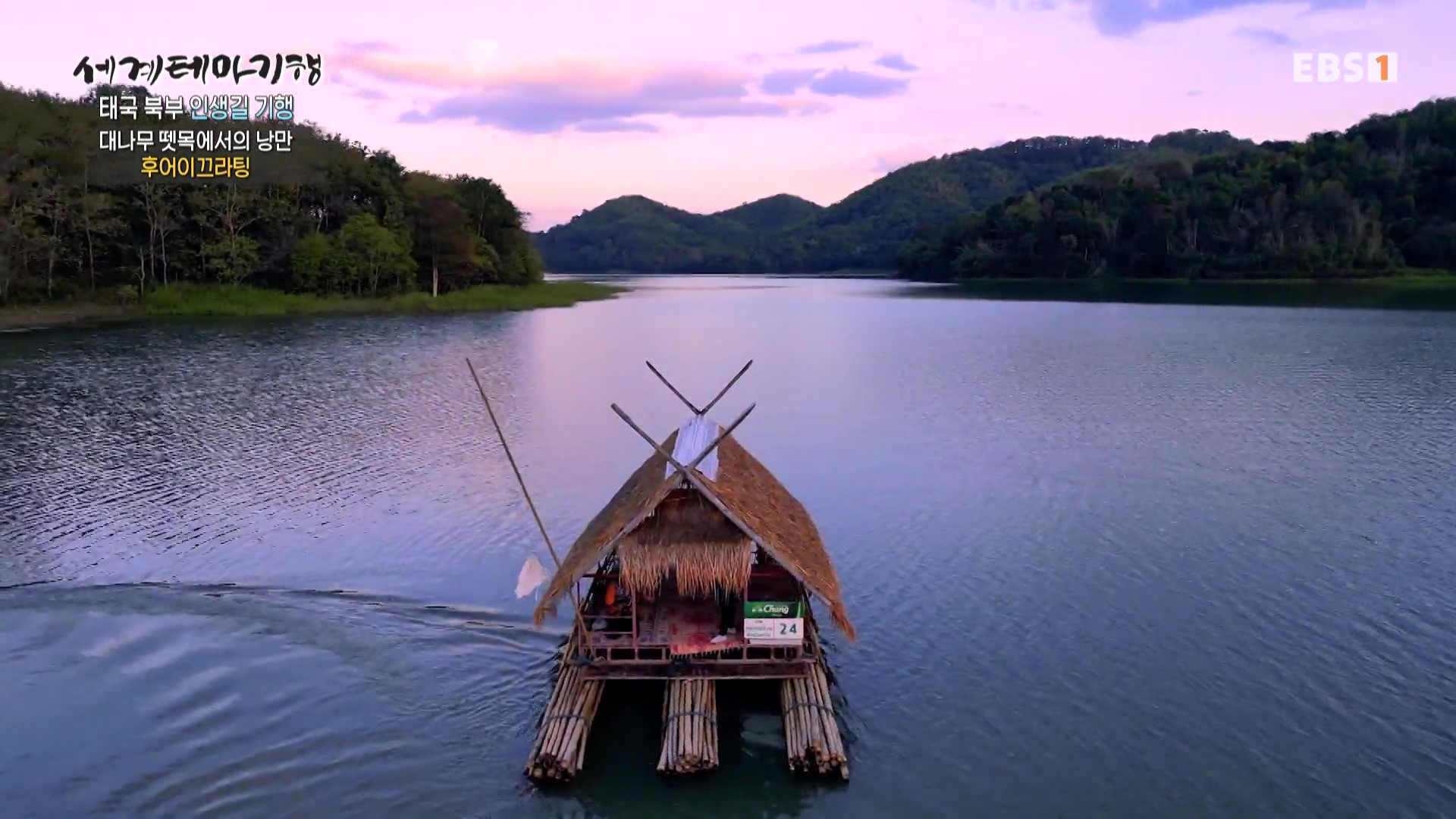 르이는 라오스와 메콩강을 사이에 둔 태국 북부고원지대로 새롭게 떠오르는 생태관광지입니다. 후어이 끄라팅 호수에는 집 모양의 뗏목들이 있는데 작은 배로 뗏목을 끌고 저수지 한가운데로 나갑니다. 뗏목의 집은 대나무를 묶어 물에 뜨는 원리로군요. 뗏목 관리인에게 음식을 주문하면 배로 배달해 줍니다.