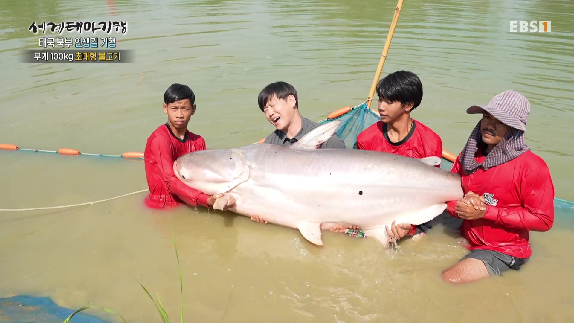 나콤빠톰은 방콕 근교의 도시로 농업용 운하와 저수지가 많은 곳입니다. 이런 저수지에서 물고기 양식업을 많이 한다는군요. 그런데 메콩강은 초대형 어종이 서식하기 좋은 환경이어서 엄청 큰 물고기가 많은데 이번에 잡은 물고기는 무게가 무려 111kg입니다. 이곳 강태공들은 낚은 고기를 인증사진만 찍은 후 다시 놓아줍니다.