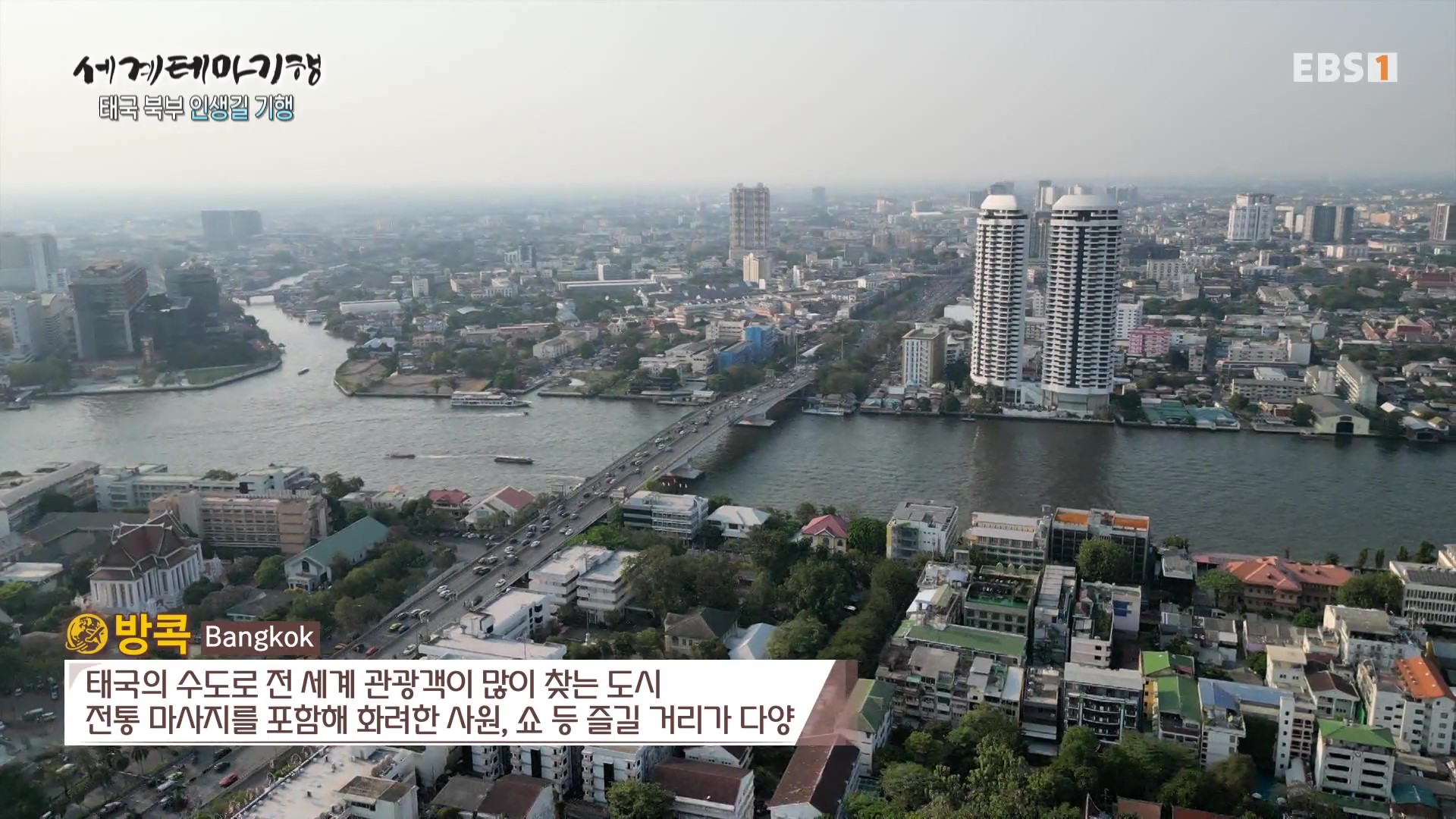 <EBS 세계테마기행>은 안방에 편안하게 앉아서 세계의 명소들을 체험할 수 있는 수준 높은 교양프로그램입니다. 각 방면에 걸쳐 다양한 지식을 가진 전문가가 출연해 실시하는 해설을 따라가노라면 실제로 해외여행을 하는 것 같은 착각에 빠지기도 합니다. 2024년 2월 중하순(2024. 2. 19∼2. 22)에는 “세계테마기행, 태국북부 인생길”편이 방영되었습니다. 태국의 국토면적은 한반도의 2.3배, 인구는 7,180만 명, 수도는 방콕입니다.