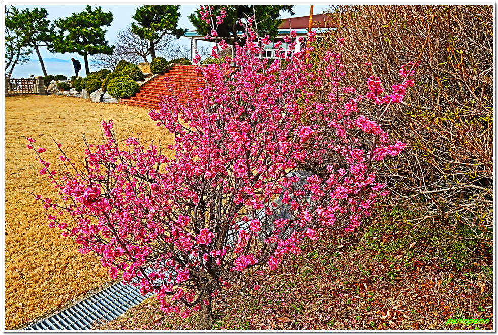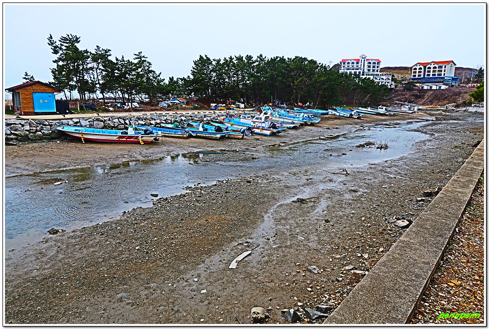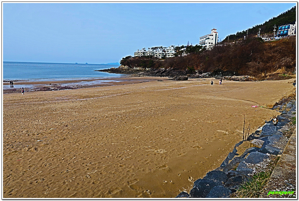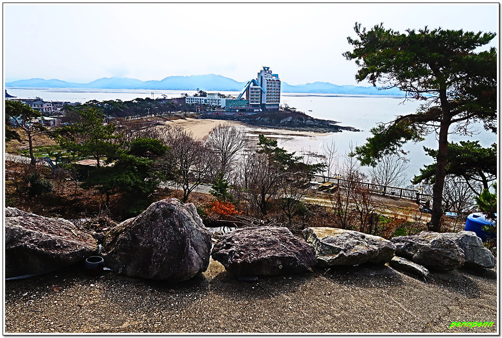 전북 학생해양수련원 경내에는 홍매화가 화사하게 피어 있어 벌써 봄의 정취를 만끽하기에 부족함이 없습니다. 솔섬 북쪽의 언포해변을 지나갑니다. 상록선착장에는 몇 척의 어선이 정박하고 있더군요. 이어지는 상록해변은 불멸의 이순신 해상전투 촬영장입니다. “불멸의 이순신”은 KBS 대하드라마로 2004년 9월부터 1년간 방영되었으며 이순신 역으로 배우 김영민이 열연했습니다.
