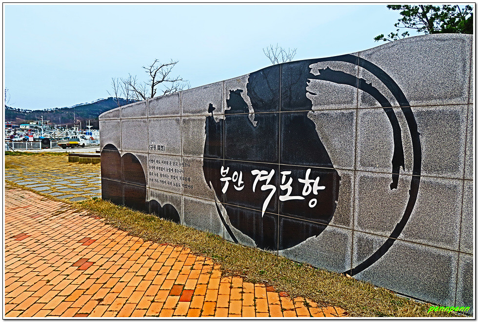 좌수영 세트장에서 깔딱고개를 오르면 고갯마루에 쉼터인 정자가 있는데 여기서 우측 산길은 봉화봉(172m)으로 가는 길이므로 우리는 바로 직진해 도로를 따라 갑니다. 갈림길에서 좌측 숲길로 내려서면 드디어 목적지인 격포항입니다. 변산면 격포리 소재 국가어항인 격포항은 북으로는 닭이봉(86m), 남으로는 봉화봉(172m)이 감싸고 있으며, 위도와 고군산군도 및 홍도 등 서해안도서와 연계된 해상교통의 중심지로 해양수산부에서 선정한 우리나라 “아름다운 어촌 100개소”중 한곳입니다.