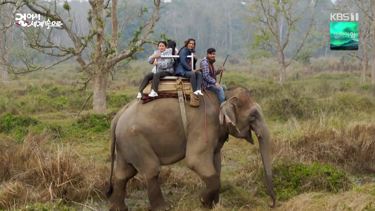 치트완 국립공원은 정글보호를 위해 만든 공원으로 벵골호랑이, 인도코뿔소, 늪지악어 등을 볼 수 있습니다. 면적이 서울의 1.5배인 아시아 최대 야생동물 보호구역입니다. 취재진은 방문객들과 함께 코끼리를 타고 정글을 투어하면서 사슴, 늪지악어, 외뿔코풀소를 실제로 목격했습니다.
