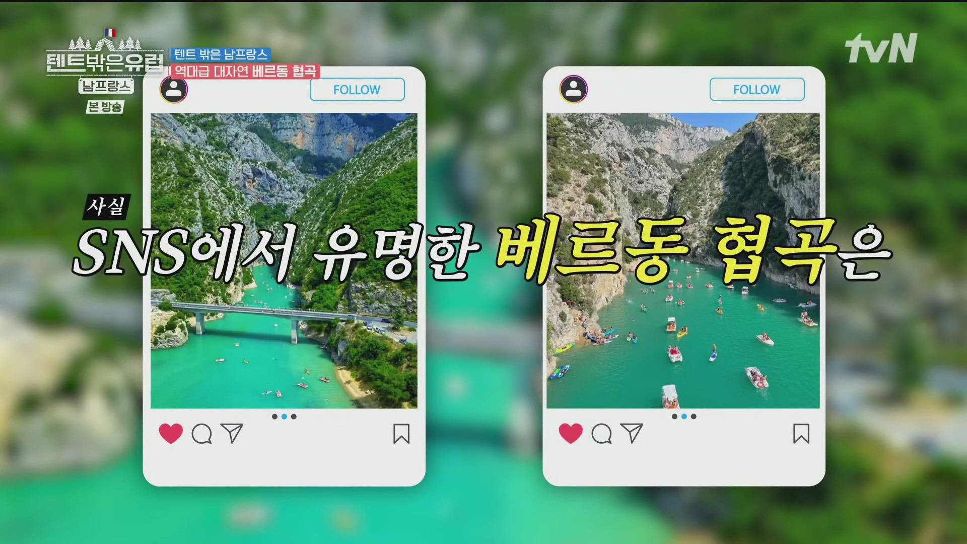 2023. 2. 18 방영된 제1회는 4인방이 남프랑스 니스에 도착한 후 베르동 협곡에 자리잡은 캠핑장에 도착하는 과정을 보여주었습니다. 니스는 말만 들어도 가슴이 설레는 해변이며, 길이가 무려 25km에 달하는 유럽에서 가장 긴 베르동 협곡은 남프랑스의 대표휴양지로 요즘 SNS상에서 가장 핫(hot)한 인증장소라고 합니다.