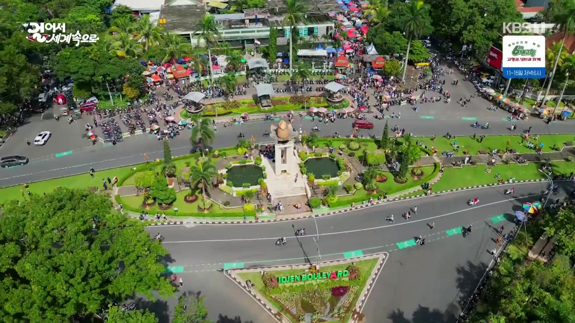 1만 7천개가 넘는 섬들로 이루어진 인도네시아의 국토면적은 한반도의 8.6배, 인구는 2억 7,753만 명, 수도는 자카르타입니다. 말랑은 인도네시아 자바주 동부에 위치한 도시로 해발 약 500m의 산악지대에 위치합니다. 투구말랑공원은 네덜란드 식민지시절 조성된 공원이며 이젠대로 중앙에는 인도네시아 독립전쟁 때 네덜란드와 맞서 싸운 이들을 기리는 멜라디탑이 있습니다. 인근에는 매주 일요일 각 지역을 대표하는 먹거리 시장이 열립니다.