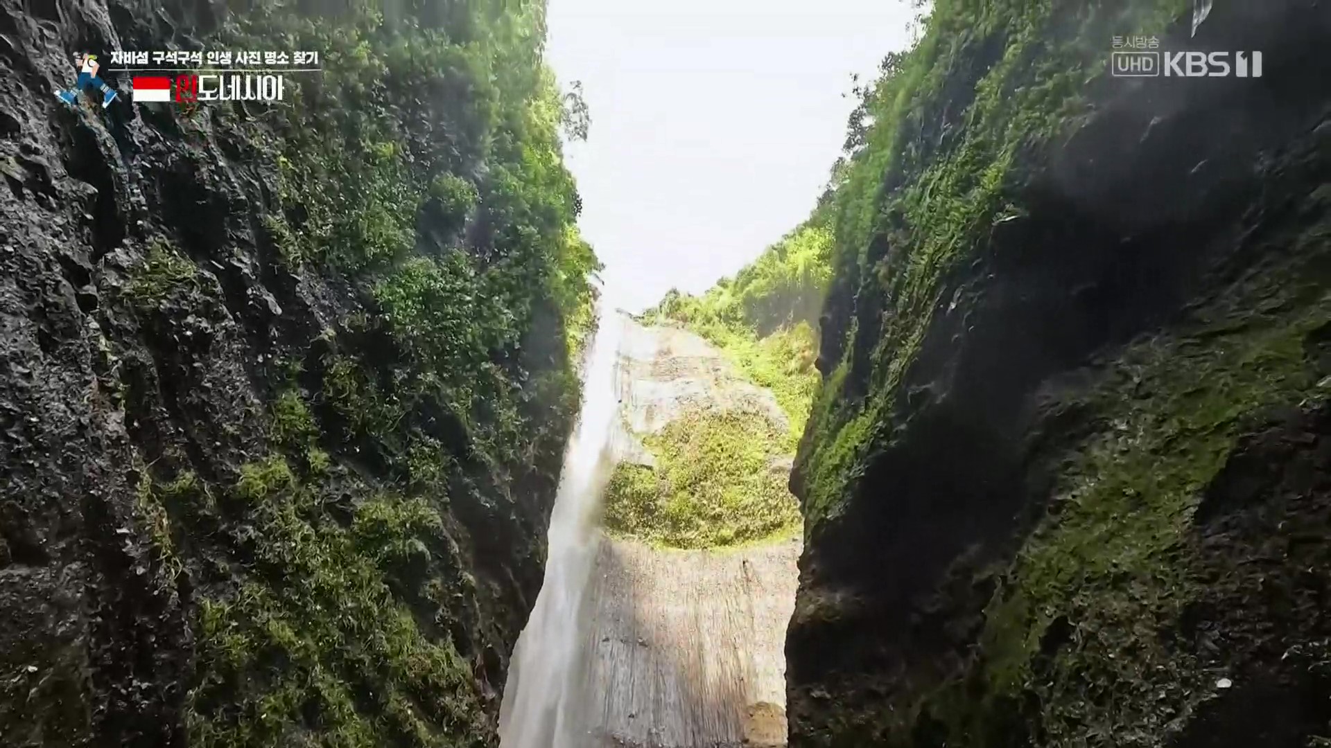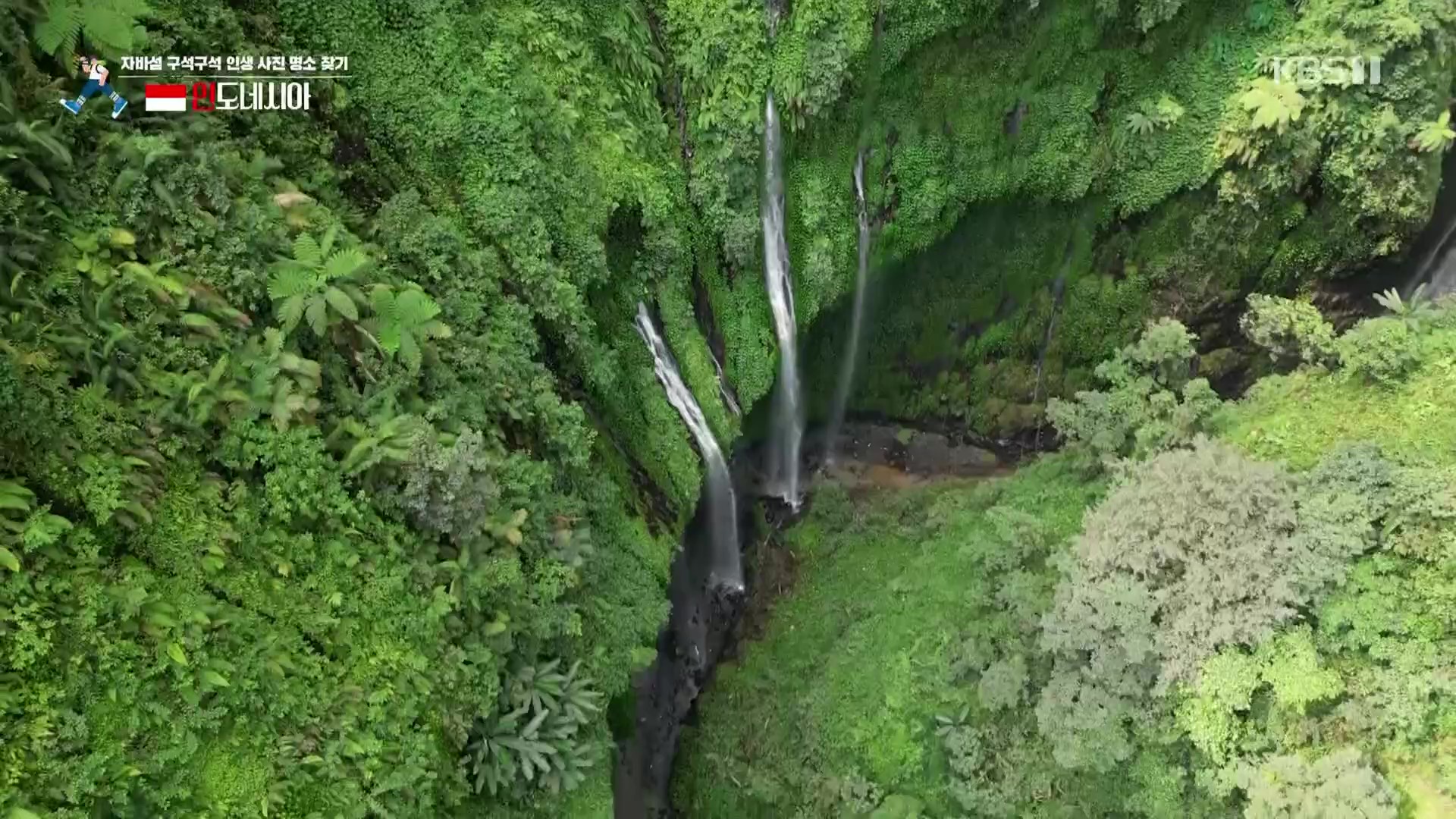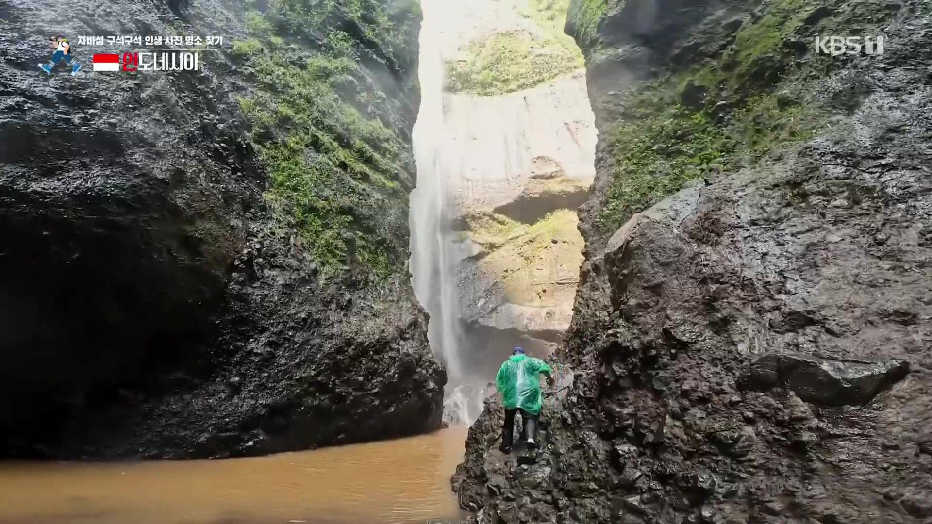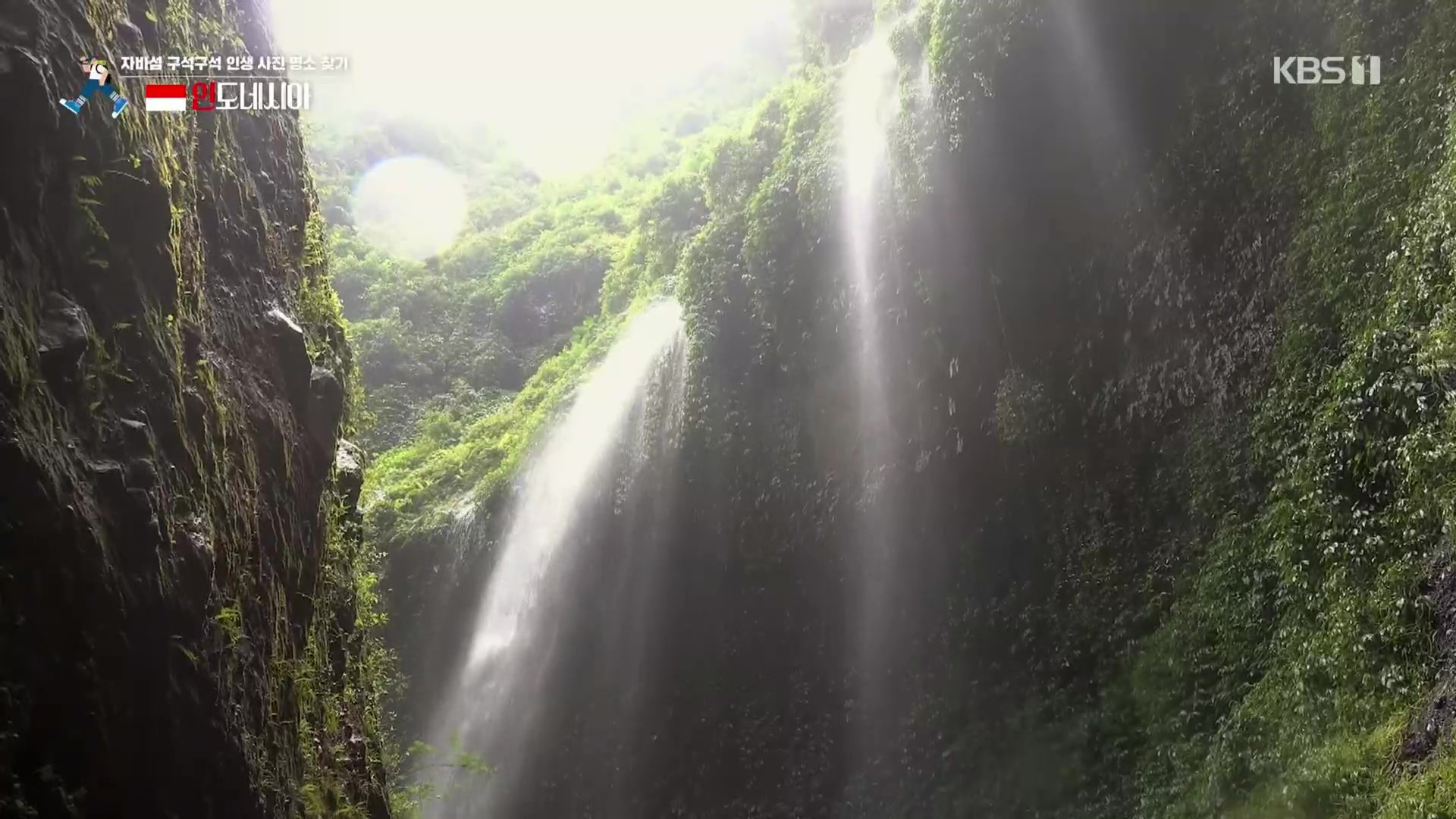 세 번째 인생사진 명소는 마다카리푸라 폭포로 13세기 위대한 장군인 가자마다 장군이 명상 수행을 했다는 폭포입니다. 자바섬에서 가장 높은 폭포입니다. 취재진은 현지 가이드의 안내로 폭포수를 온몸으로 맞으며 맨 안쪽의 메인폭포까지 접근할 수 있었습니다. 약 200m 높이에서 떨어지는 폭포수는 자연의 경이로움을 다시 느끼게 해줍니다.