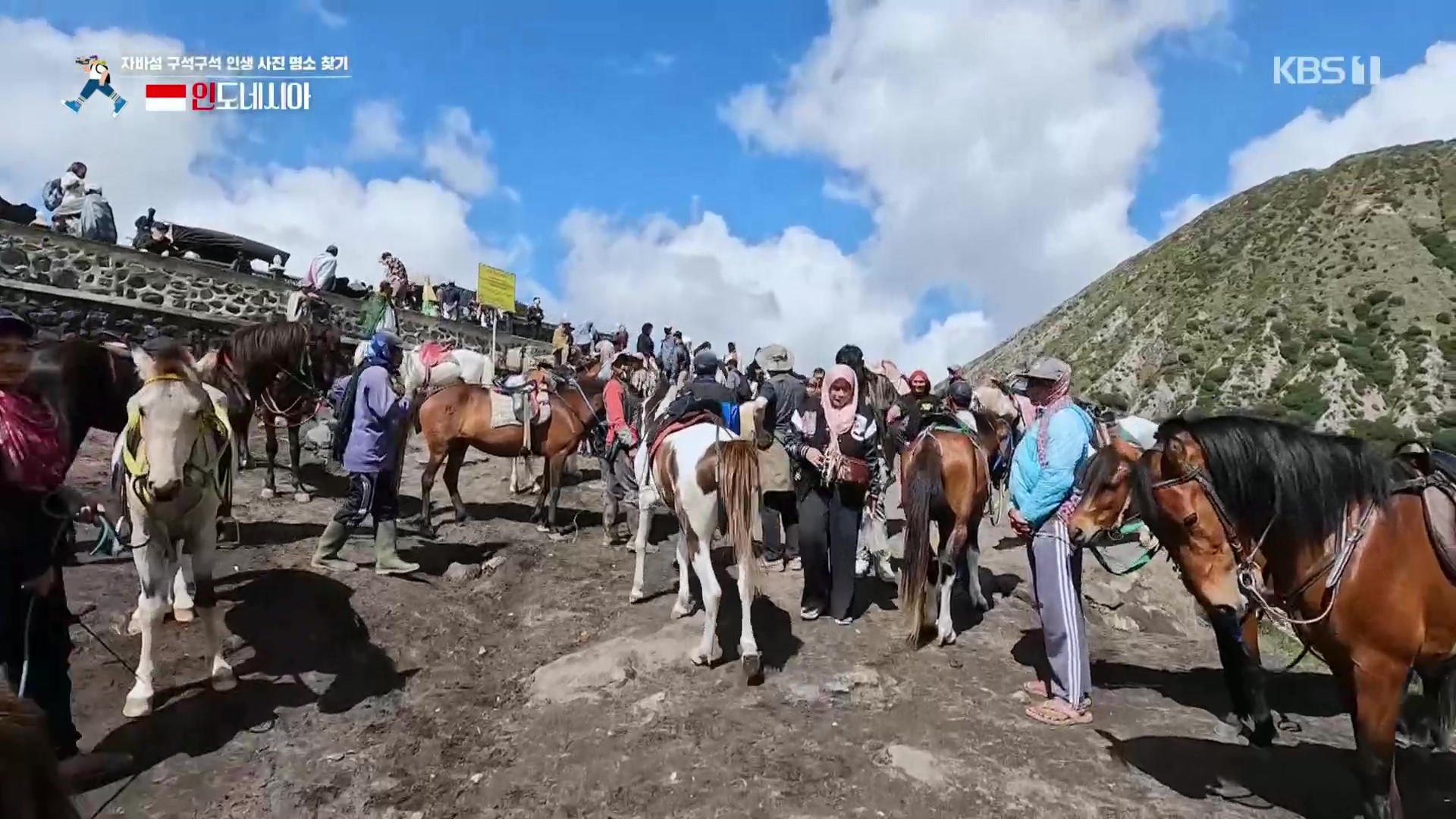 쁘난자칸 전망대는 일출명소로 이른 새벽 산에 오른 이들은 흐린 날씨로 인해 황홀한 일출은 보지 못했지만 그래도 매우 행복한 표정입니다. 브로모 탱게르 스메루 국립공원은 3개의 화산이 그림처럼 펼쳐지는 곳입니다. 때마침 브로모 화산에서는 흰 연기를 뿜고 있습니다. 화산재가 쌓여 모래로 변한 지역을 라우탄 파시르(모래의 바다)라고 부르는데 이젠 초원으로 변한 곳도 있습니다.