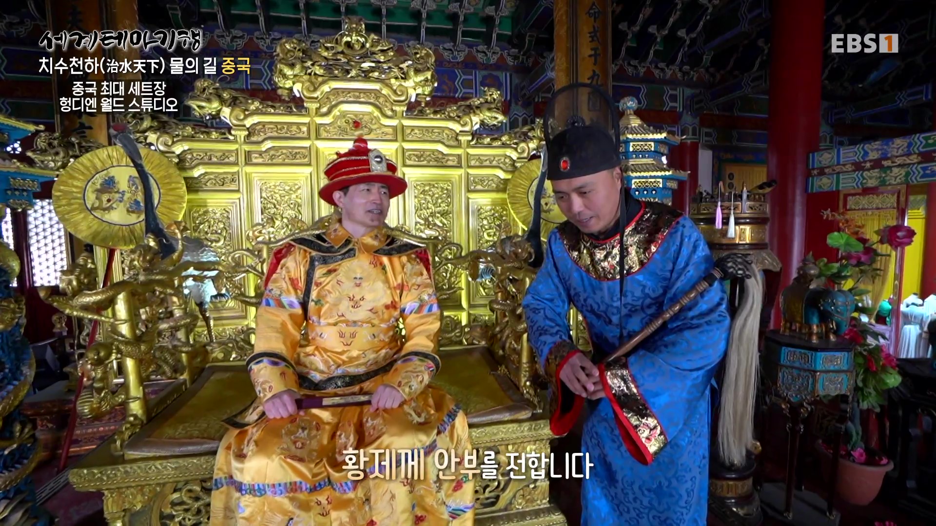 헝디엔 월드 스튜디오는 중국 최대 규모 영화세트장으로 30여개의 대형세트장과 130여개의 실내세트장이 있습니다. 취재인은 중국황제의 옷을 빌려 입고는 관람에 나섭니다. 명청궁원은 북경의 자금성을 재현한 세트장이며, 태화전은 명나라 때 지어진 것으로 관람객은 중국황제자리에 앉아 기념촬영을 할 수 있습니다. 1930-50년대를 재현한 상하이 세트장도 인기입니다.