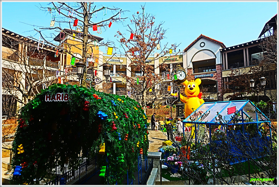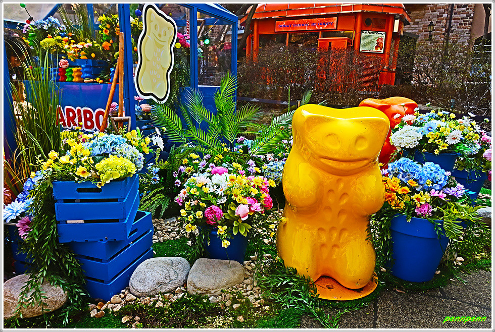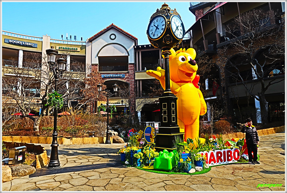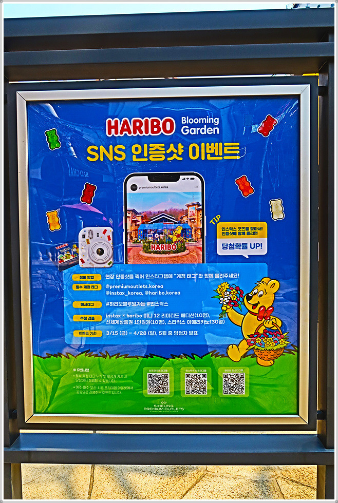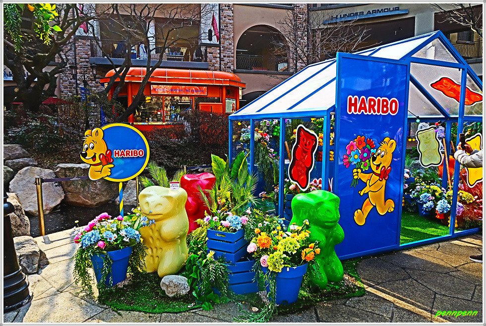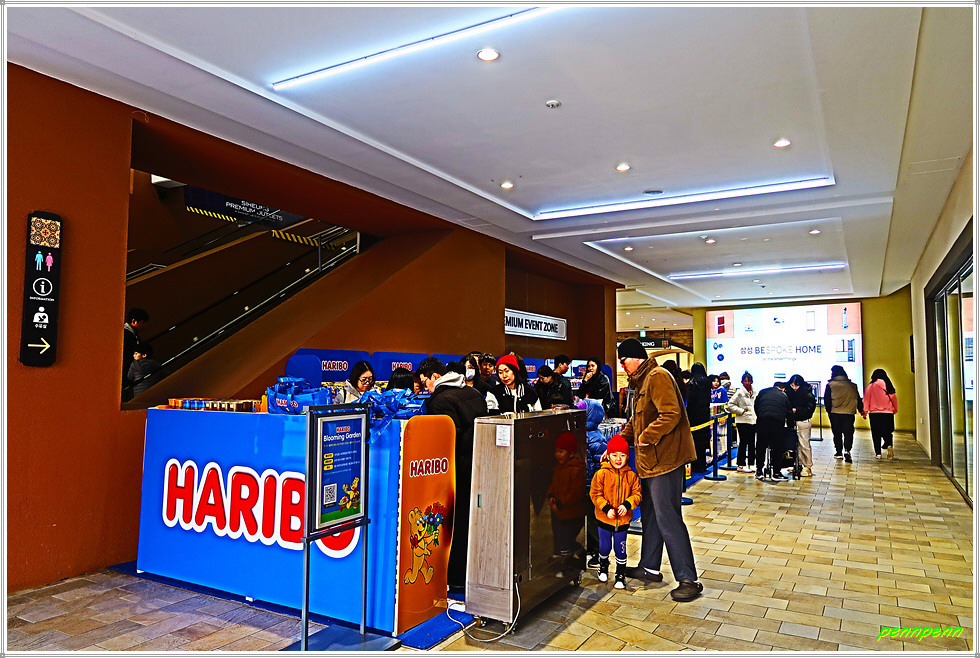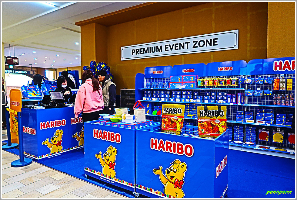 휴일을 맞아 신세계 시흥 프리미엄 아울렛을 방문했는데 주차장에서 센트럴 가든으로 들어서면 제일 먼저 대형 하리보 상징조형물인 골드베렌이 세워져 있습니다. 그 주변에는 젤리곰으로 꾸민 가든 포토존, 온실하우스, 다양한 현장 이벤트(하리보 마스코트와 즉석 사진 찍기, 하리보 미니 젤리 받기, 알록달록 풍선증정, 룰렛을 돌려 하리보 상품받기)를 진행하고 있으며 하리보관련 상품도 판매중입니다.