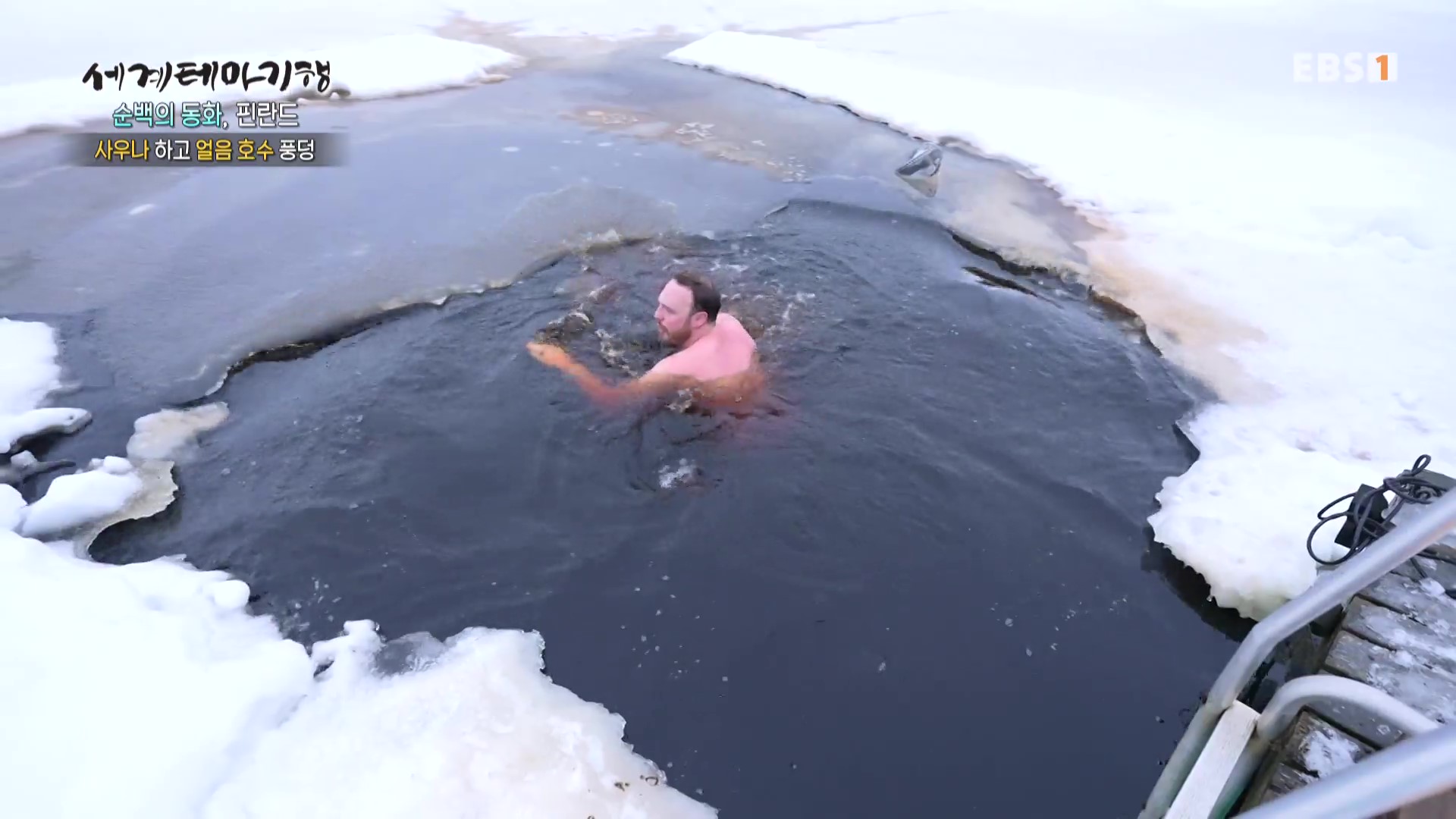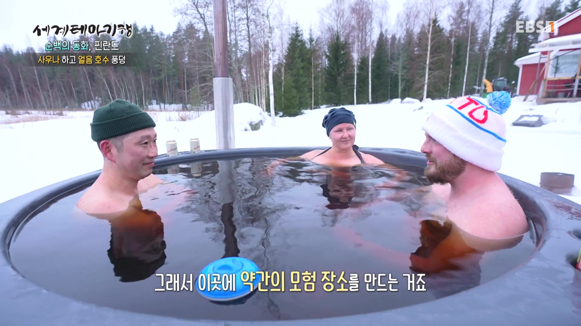 핀란드는 국토의 75%가 숲이고 호수가 18만개입니다. 탐페레 숲에 거주하는 지인의 부부집으로 갑니다. 이들이 행복한 이유는 돌찜질 사우나 후 얼음물에 입수해 수영을 하고 마지막으로 간이온수탕에 몸을 담그는 것입니다. 얼음수영은 핀란드인들이 건강과 장수의 비결로 겨울철 사우나를 즐기는 방식입니다. 수영을 한 후 먹는 불꽃으로 훈제한 연어는 그 맛이 일품입니다.