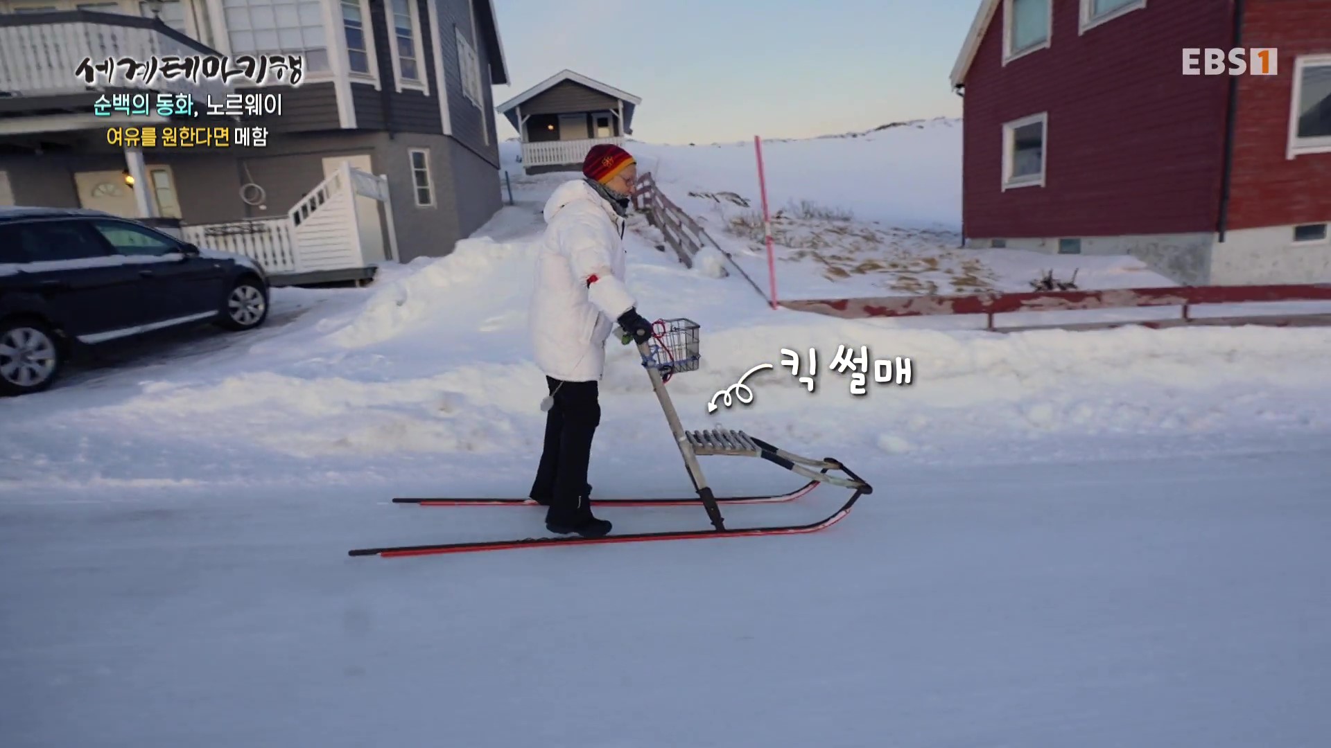 눈의 고장인 메함에서는 한발로 미는 킥 썰매를 많이 탑니다. 시장을 보러 갈 때에도 이용하지요. 이곳 주민은 800여명, 국적은 30여 개입니다. 이 마을에는 택시가 한 대뿐이라네요. 교회는 가장 높은 건물이고, 크리스마스 박물관은 4만5천여 점의 소장품이 있어 아마도 세계에서 가장 클 것이라고 합니다. 박물관 소장품 중 275년 된 산타는 가장 나이가 많지요. 옛날에는 집을 지을 때 집을 보호하는 수호신으로 벽에 산타를 넣었는데 이 산타는 옛집의 벽을 허물 때 발견되었다고 합니다. 이곳은 하늘의 색상이 참 좋군요.