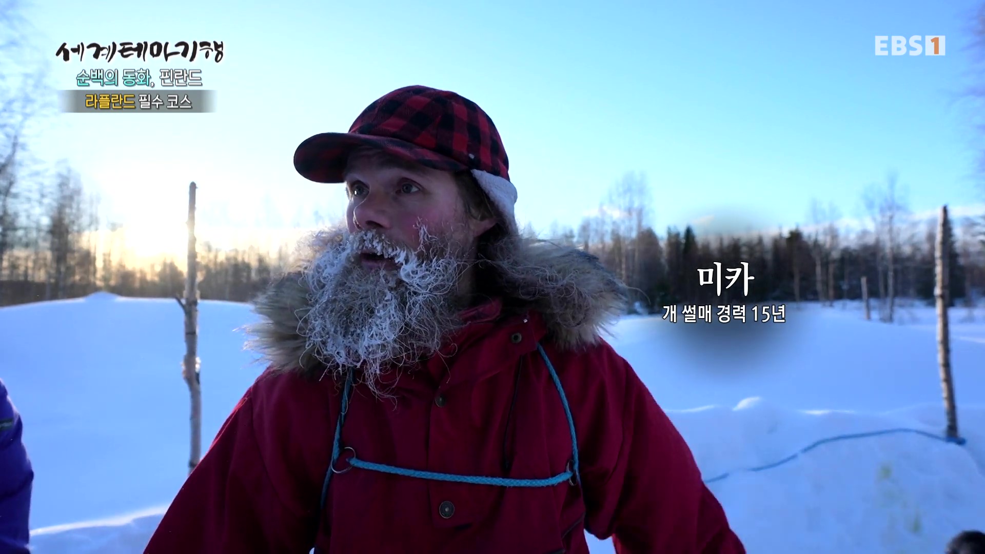 로바니에미는 핀란드 최북단 라플란드의 중심도시입니다. 아침기온은 영하 28도, 이곳은 개썰매와 사우나, 그리고 오로라 관측이 유명합니다. 개썰매는 핀란드 북부의 대표적인 겨울스포츠 겸 전통적인 이동수단입니다. 개설매 기수인 미카는 수염이 하얗게 얼어붙어 산타크로스를 닮았습니다. 개썰매는 시속 20km의 속도로 꽁꽁 언 호수 위를 달립니다.
