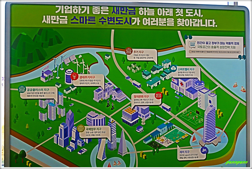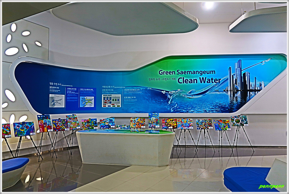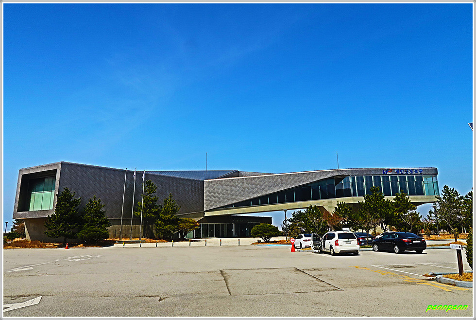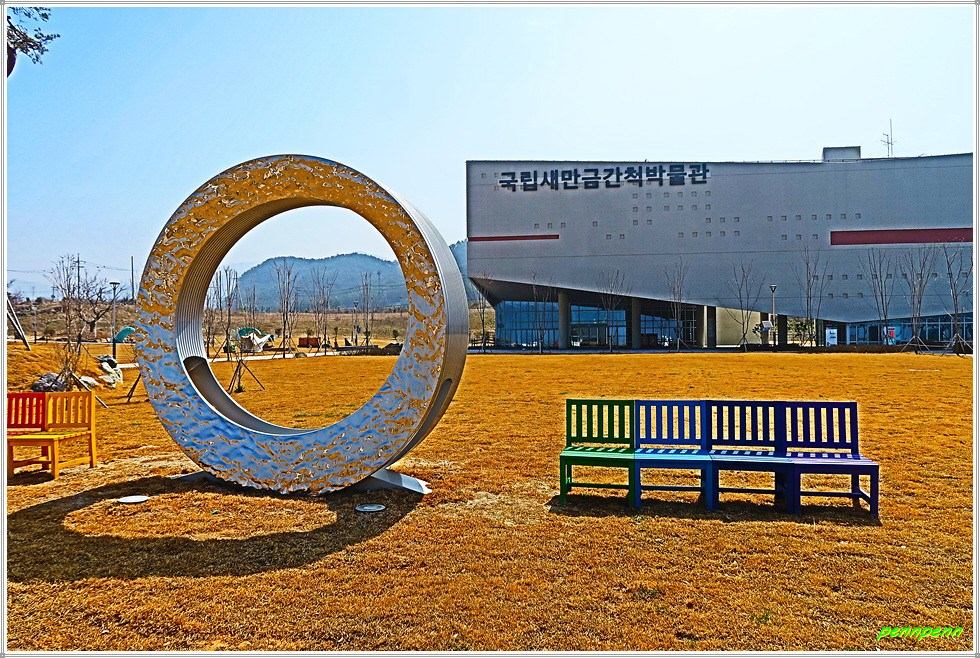 언덕의 쉼터 겸 조망대를 지나면 국립새만금간척박물관이 빤히 보이는데 주변이 공사 중이어서 희미한 길을 잘 찾아야할 것입니다. 변산면 대항리 소재 국립새만금간척박물관은 새만금간척사업과 우리나라 간척의 역사와 문화유산을 널리 알리기 위해 조성한 박물관으로 전시와 체험을 통해 우리나라와 세계 여러 나라의 간척의 역사와 문화 및 기술을 알 수 있습니다. 야외전시장에도 다양한 조형물이 조성되어 있고 실내전시장은 정말 그 규모와 전시물이 엄청나더군요.
