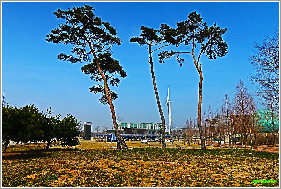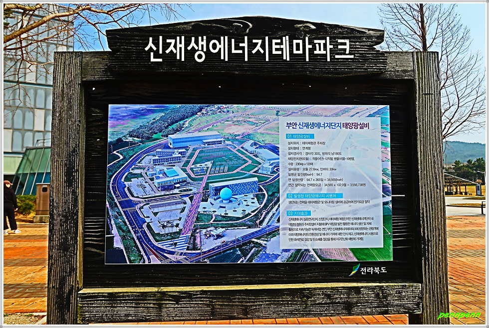 백련어촌계를 지나 굴다리를 건넌 다음 조금 더 가면 목적지인 신재생 에너지 테마파크입니다. 부안군 하서면 백련리 소재 신재생에너지 테마파크는 전국에서 최초로 조성되는 복합단지로 신재생에너지에 대한 연구와 실증 및 산업을 집적화해 동북아 메카로 발돋움하기 위해 조성한 테마파크입니다. 실증연구단지에서는 세계적인 두뇌와 기업들이 모여 풍력·태양광·수소연료전지·바이오 냉난방에 대한 연구와 실험을 추진할 수 있는 최첨단 연구시설을 갖추고 있으며, 체험단지에서는 테마체험 및 교육홍보사업을 시행하고 있습니다.