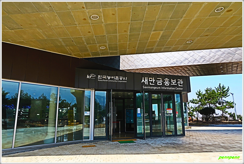 전시관 앞 로터리(회전교차로)에는 새만금방조제를 알리는 대형 표석이 세워져 있는데 여기서 신시도까지는 새만금1호방조제입니다. 새만금간척박물관에서 도로를 건너면 한국농어촌공사가 운영하는 새만금홍보관이 있습니다. 새만금사업은 부안군 변산면 대항리에서 북쪽으로 가력도, 신시도, 야미도, 비응도(군산)까지 잇는 세계 최장 33.9km의 방조제를 축조하여 그 안의 바다를 육지로 만들어 새로 생겨날 국토는 여의도의 140배에 달합니다. 새만금홍보관은 지하 1층 지상 3층의 규모로 새만금 전망대, 새만금 투어, 친환경 워터 도시, 명품 복합도시 프로젝트, 새만금의 비전과 전략 등의 내용을 볼 수 있습니다.