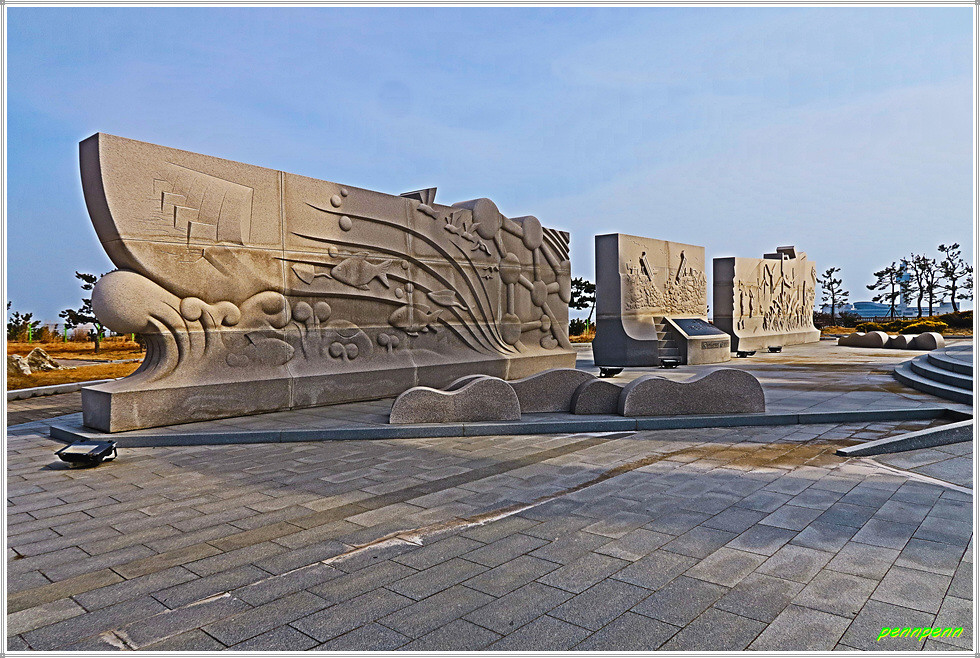 새만금 외곽방조제는 2조 9,490억 원의 사업비를 들여 1991-2010기간 중 준공했는데 이곳 신시광장의 준공탑은 이를 기념하기 위한 것입니다. 준공기념탑이 있는 신시도는 선유도와 함께 고군산군도에 포함된 섬인데 신시광장은 신시도항 남쪽에 자리 잡고 있습니다.