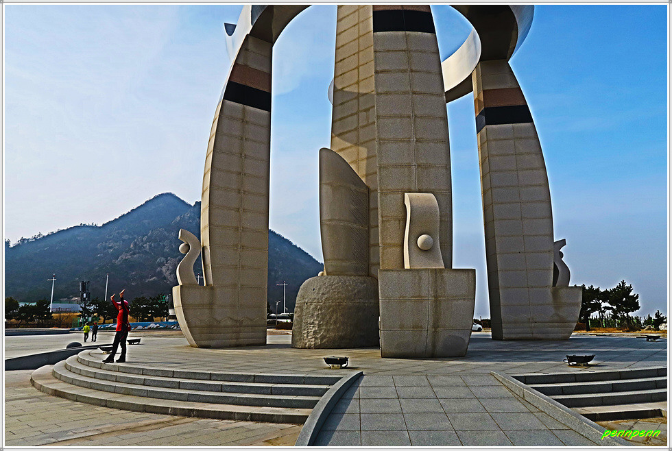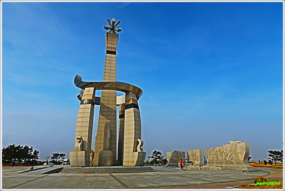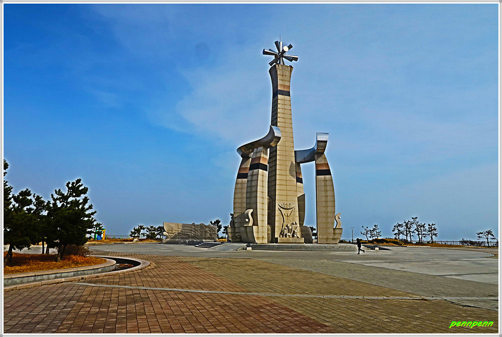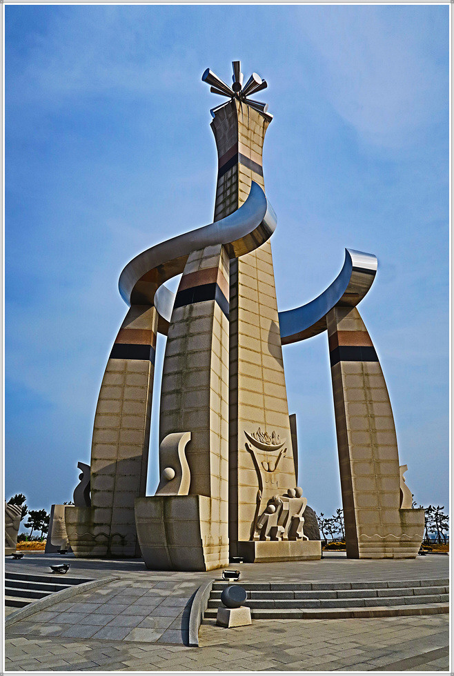 전북 군산시 옥도면 신시도리 소재 신시광장의 새만금방조제준공기념탑은 세계 최대의 방조제로 기네스북에 등재된 새만금방조제의 준공을 기념하는 탑입니다. 부안과 김제 및 군산에 걸쳐있는 새만금은 우리나라 최대 간척공사로 서해안 곡창지대인 만경평야와 김제평야를 합친 만큼의 면적이 새롭게 생긴다고 하여 만경평야의 “만”자와 김제평야의 “금(金)”자를 따서 부르게 되었습니다.