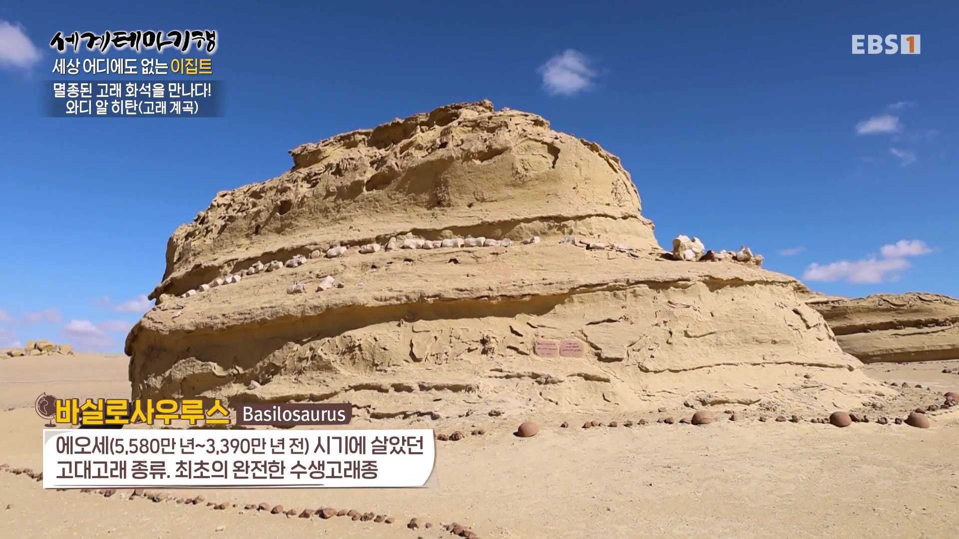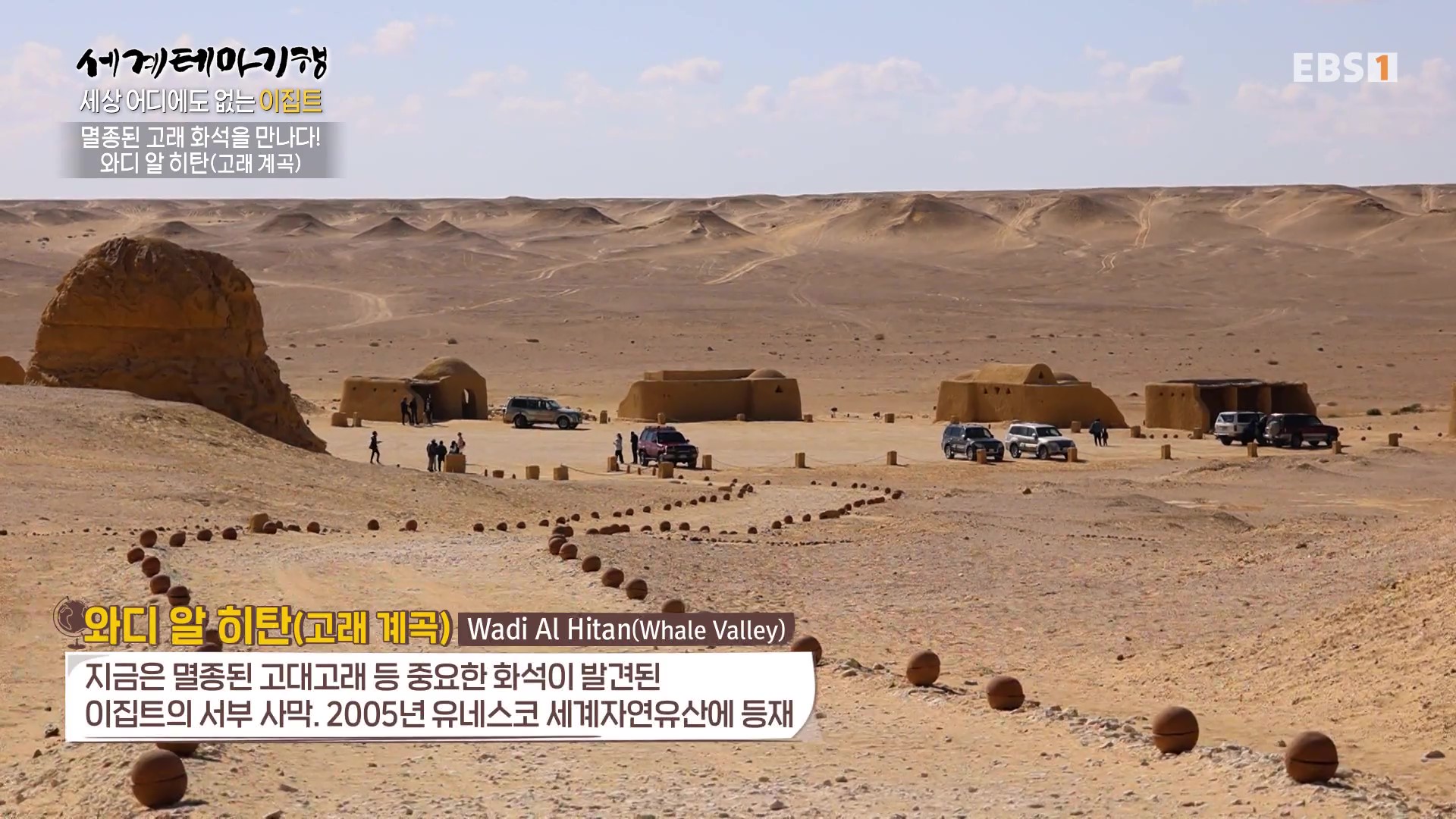 와디 알 히탄(고래계곡)은 지금은 멸종된 고대고래 등 중요한 화석이 발견된 이집트의 서부사막으로 유네스코 세계자연유산에 등재된 곳입니다. 이곳은 과거에는 바다였다가 지금은 모래사막으로 변한 곳으로 거의 완전한 모습의 고래화석을 볼 수 있습니다.