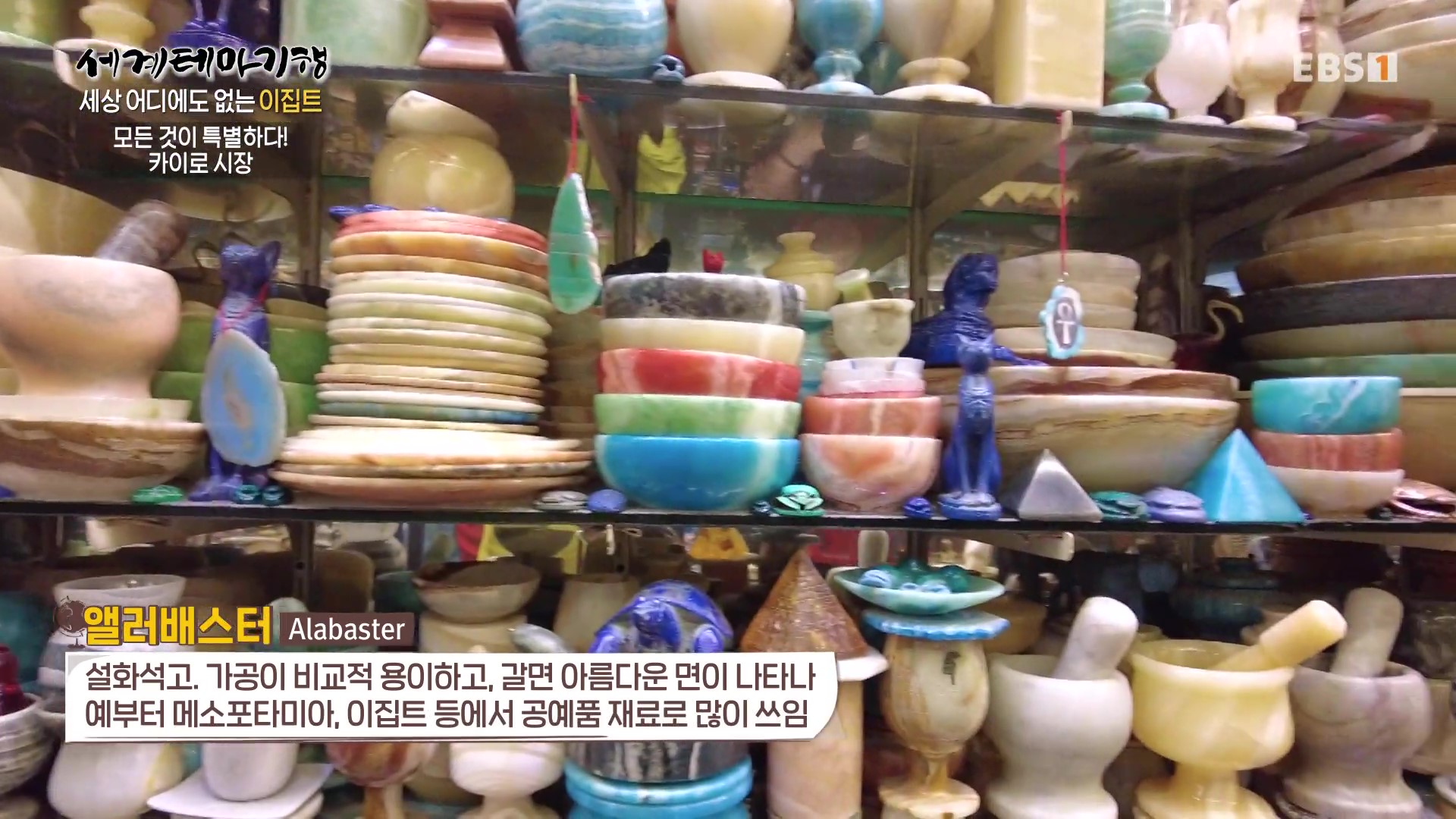 칸엘 칼릴리 시장은 14세기부터 형성된 것으로 자연스럽게 숙소와 음식점이 밀집하고 현재는 기념품점까지 없는 게 없는 전통시장입니다. 설화석고라는 부르는 앨러배스터는 가공이 비교적 용이하고 갈면 갈수록 아름다운 면이 나타나 공예품의 재료로 많이 쓰이는 물질입니다. 파피루스에 그리는 그림도 인기라네요.