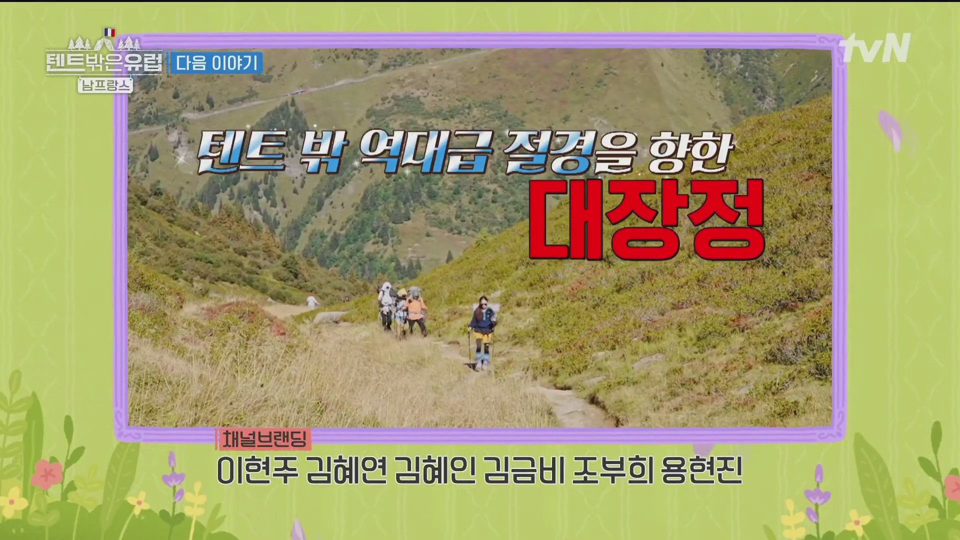 tvN이 방영중인 “텐트 밖은 유럽”은 호텔 대신 캠핑장, 기차 대신 렌터카, 식당 대신 현지 마트를 이용하여 세상 자유로운 방식으로 유럽을 여행하는 캠핑 예능입니다. 현재 시즌4가 방영 중인데 지금까지 방영된 남성 중심의 캠퍼들과는 달리 이번에는 여성4인방(배우 라미란, 한가인, 조보아, 류혜영)이 합류했습니다. 이들은 앞으로 남프랑스에서 파리까지 10박11일간 1,621km의 대장정을 떠납니다.