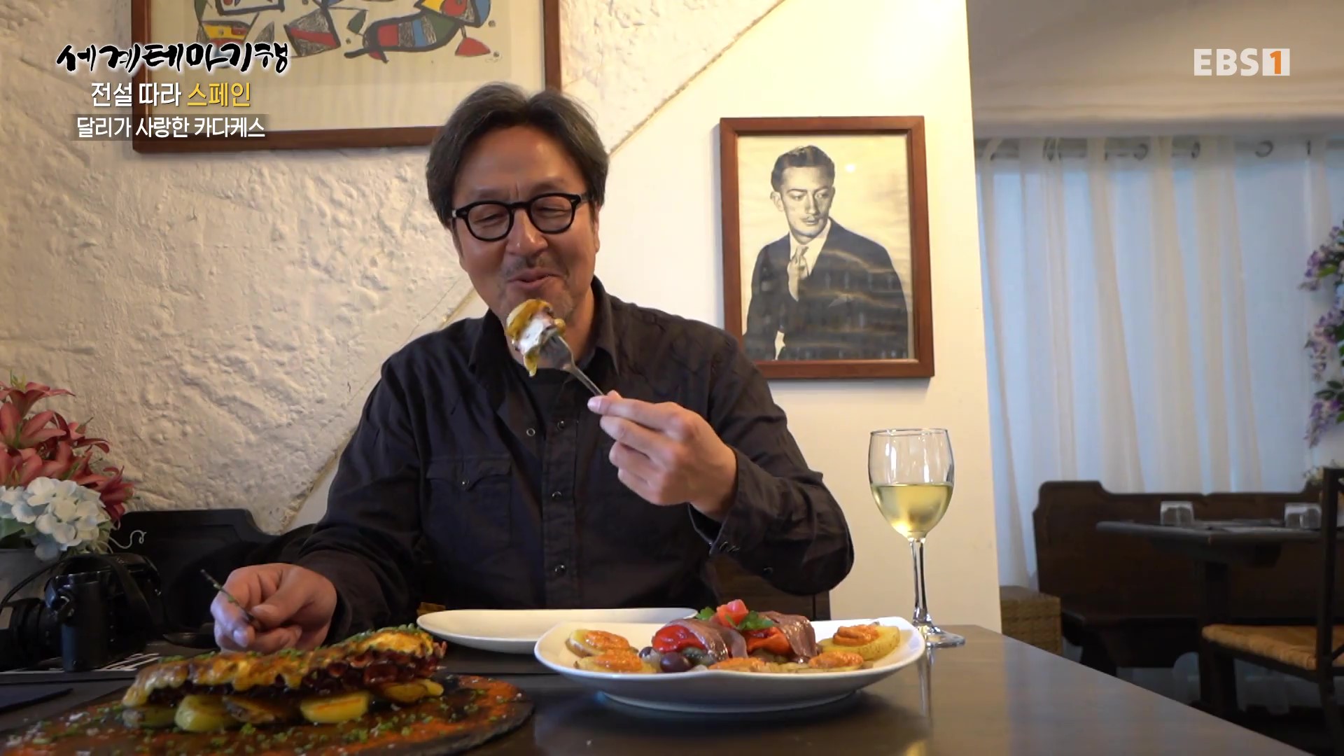카다케스는 카탈루냐주 동부 지중해 연안마을로 화가 달리가 노년을 보낸 곳입니다. 살바도르 달리(1904-1989)는 20세기 스페인 초현실주의 화가로 늘어진 시계그림으로 전설이 되었습니다. 달리가 다녔던 어느 식당은 식당의 로고를 달리가 그려주었답니다. 나승열 작가는 달리의 젊은 시절 사진 옆에서 대왕문어구이 식사를 합니다.