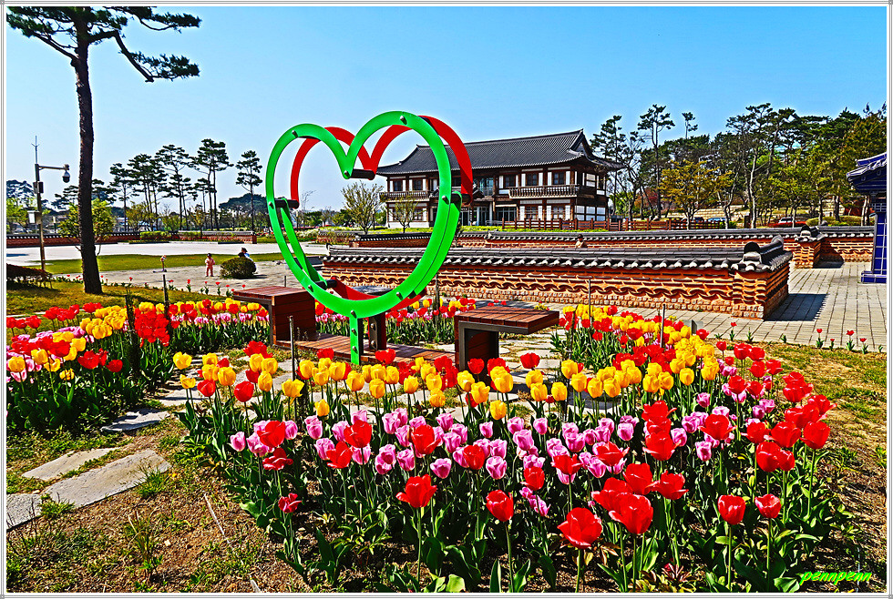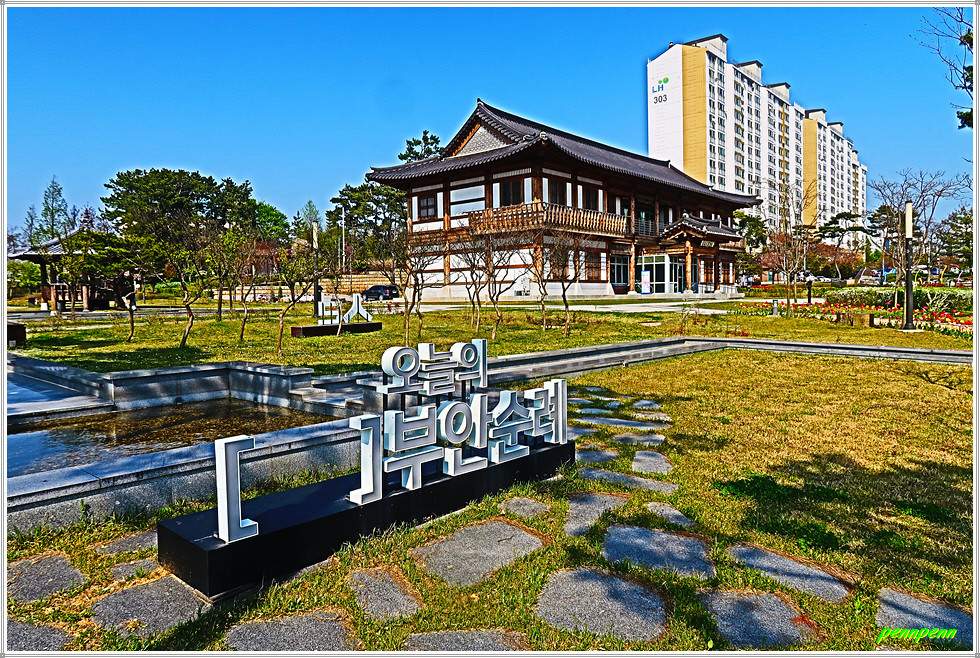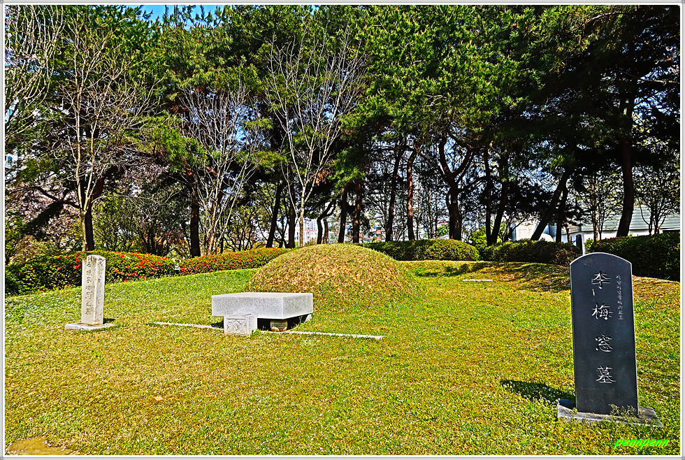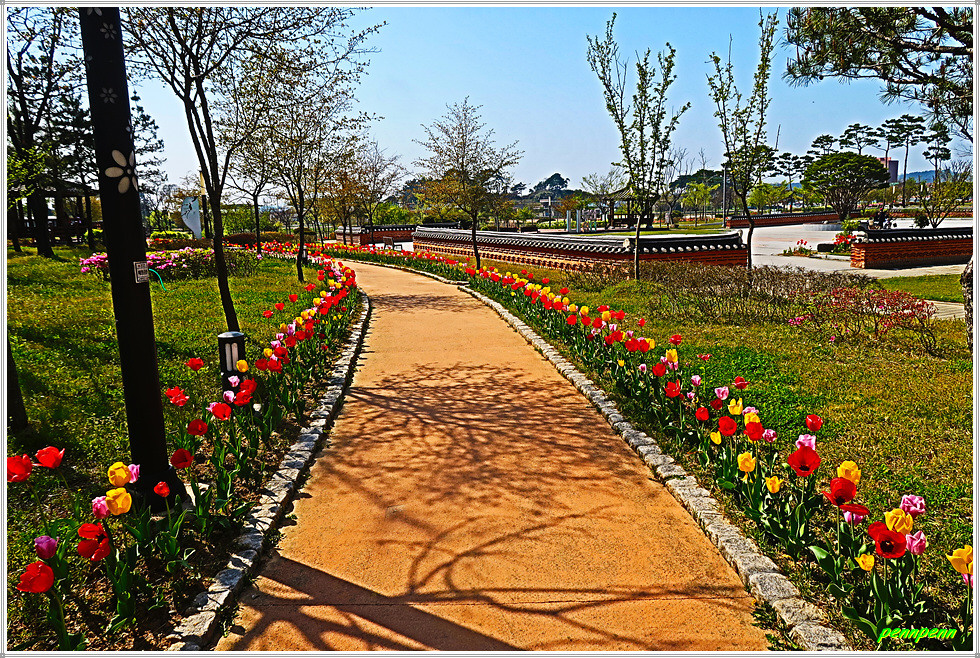 매창공원 북쪽에는 매창테마관이 있는데 이는 이매창과 관련된 자료를 수집하고 연구하면서 교육하고 활용하는 자료전시관 겸 교육홍보관입니다. 이쪽에는 산책로를 따라 튤립을 조성해 공원이 참 아름답다는 생각을 하게 만드네요.