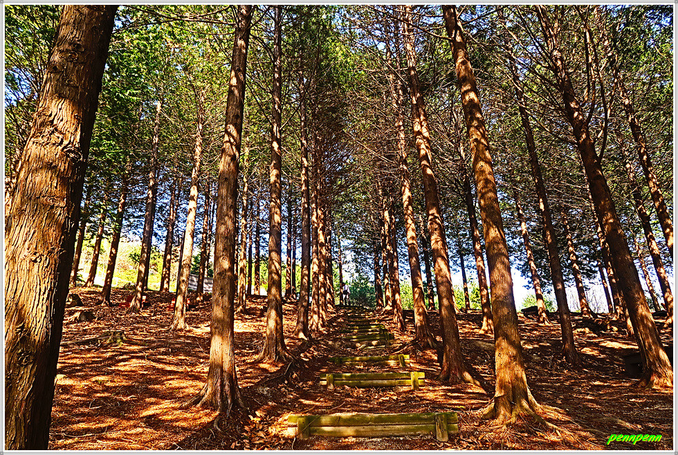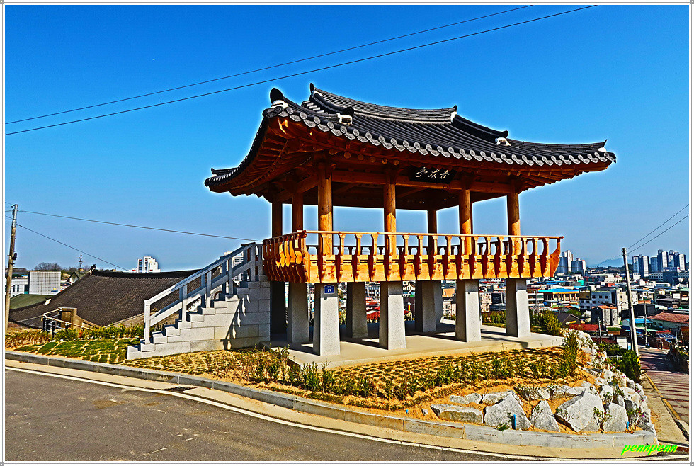 매창테미관 서쪽 교동천인공습지에서 북쪽 예술회관삼거리 횡단보도를 건너 부안문화예술회관 앞을 지나갑니다. 부안중학교 우측으로 오르면서 서외6구경노당을 경유해 서림공원으로 들어섭니다. 부안군 부안읍 동중리 소재 서림공원은 부안을 대표하는 공원으로 1848년 부안 현감으로 부임한 조연명이 조성·관리한 공원입니다. 공원 안팎에는 다양한 산책로와 푸른 나무들이 어우러져 신선한 공기와 함께 산책을 할 수 있어 군민들의 사랑을 꾸준히 받고 있습니다. 숲 사이 계단을 이용해 깔딱 오르막을 오르면 부안읍내가 한눈에 조망되는 정자입니다.
