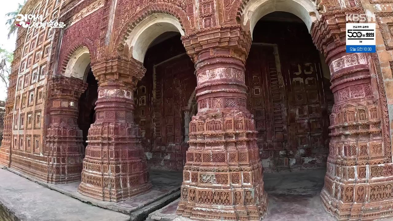 방글라데시의 국토면적은 한반도의 0.65배, 인구는 1억 7,295만 명, 수도는 다카입니다. 라지샤히는 방글라데시 7대 도시로 북서부의 행정중심도시이며, 다카에서 6시간 거리에 위치합니다. 푸티아 라지바리는 19세기 후반 영국 건축가들이 인도 사라센 양식으로 지은 궁전입니다. 궁전의 안뜰에 있는 판차 라트나 고빈다 사원은 1823년에서 1895년간 지어진 사원으로 외벽은 테라코타 조각벽돌로 지었습니다. 테라코타는 흙을 조각해 만든 벽돌을 의미합니다.
