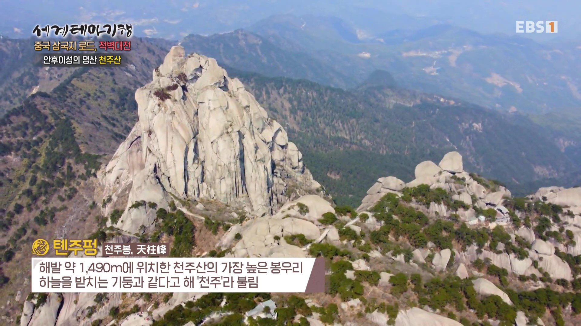 안후이성(안휘성)은 삼국시대 조조와 손권세력의 접전지역으로 3대 명산인 황산, 주화산, 톈주산(천주산)이 유명합니다. 버스와 케이블카를 타고 산의 중턱까지 오른 후 도보로 2시간을 더 가면 천주봉 전망대입니다. 해발 1,490m의 천주산은 하늘을 받치는 기둥이라고 하여 지은 이름입니다.