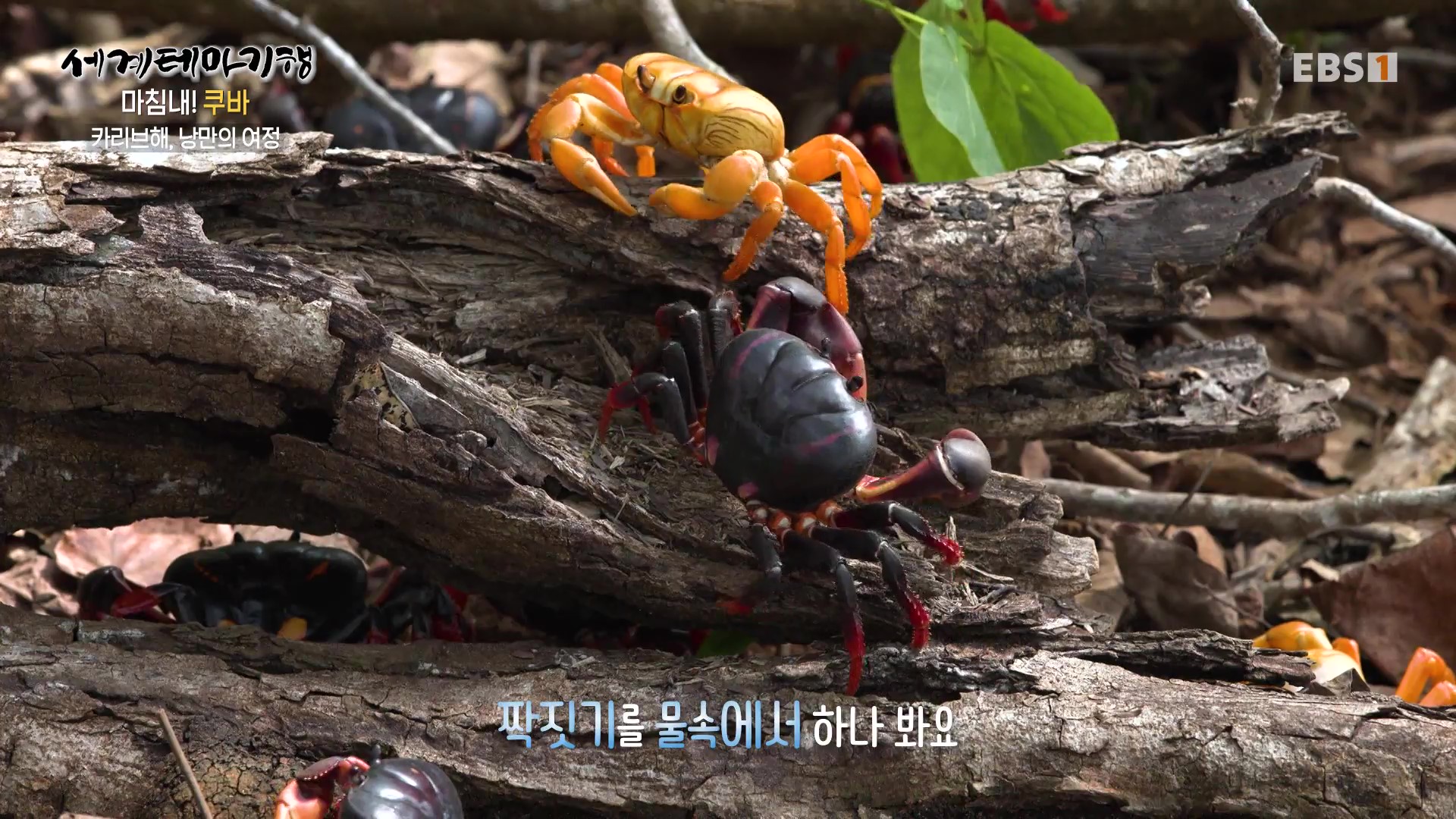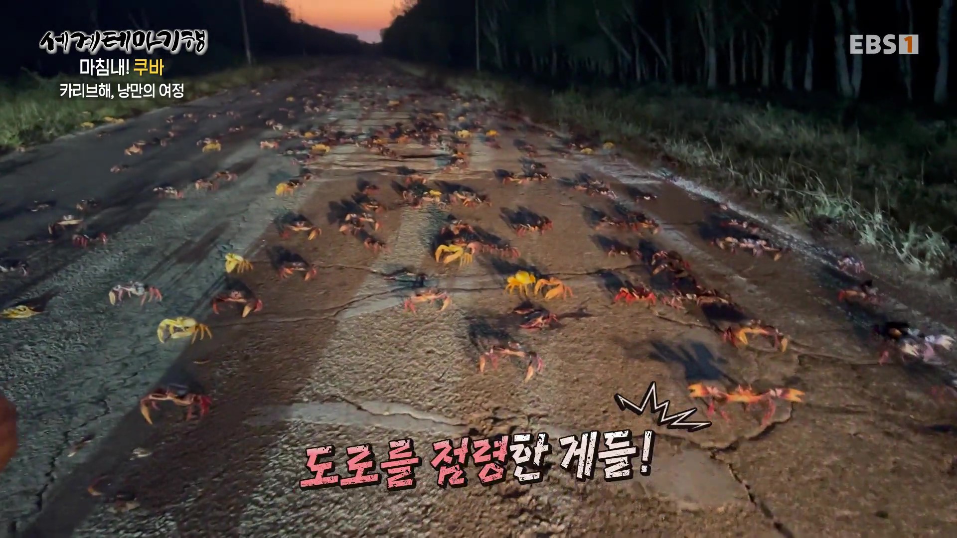 플라야 라르가는 쿠바 남부 지중해의 작은 해변으로 수심이 얕고 잔잔해 스노클링의 적지입니다. 바다 속은 물 반 고기 반이로군요. 해안도로는 게 떼가 점령한 상태로 이들 게는 짝짓기를 위해 이동 중인데 산란기 며칠 동안만 볼 수 있답니다. 게의 서식지인 숲에는 정말 게 천지입니다.