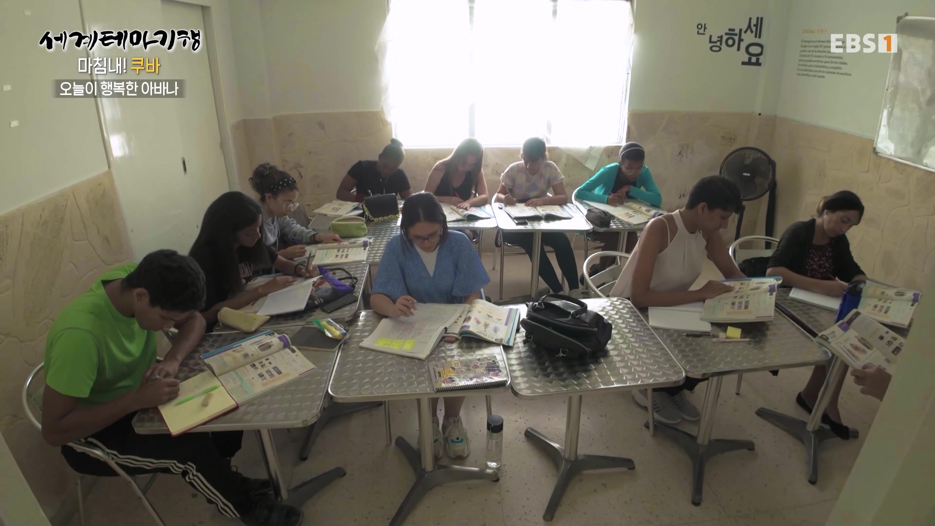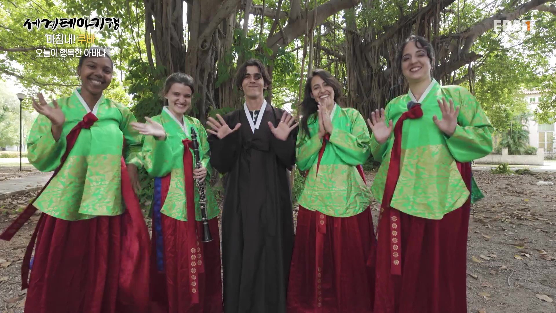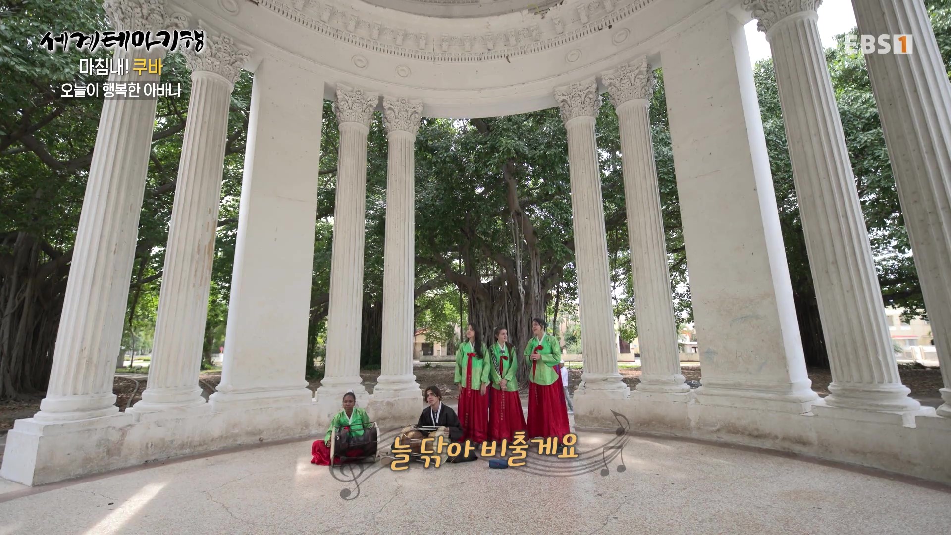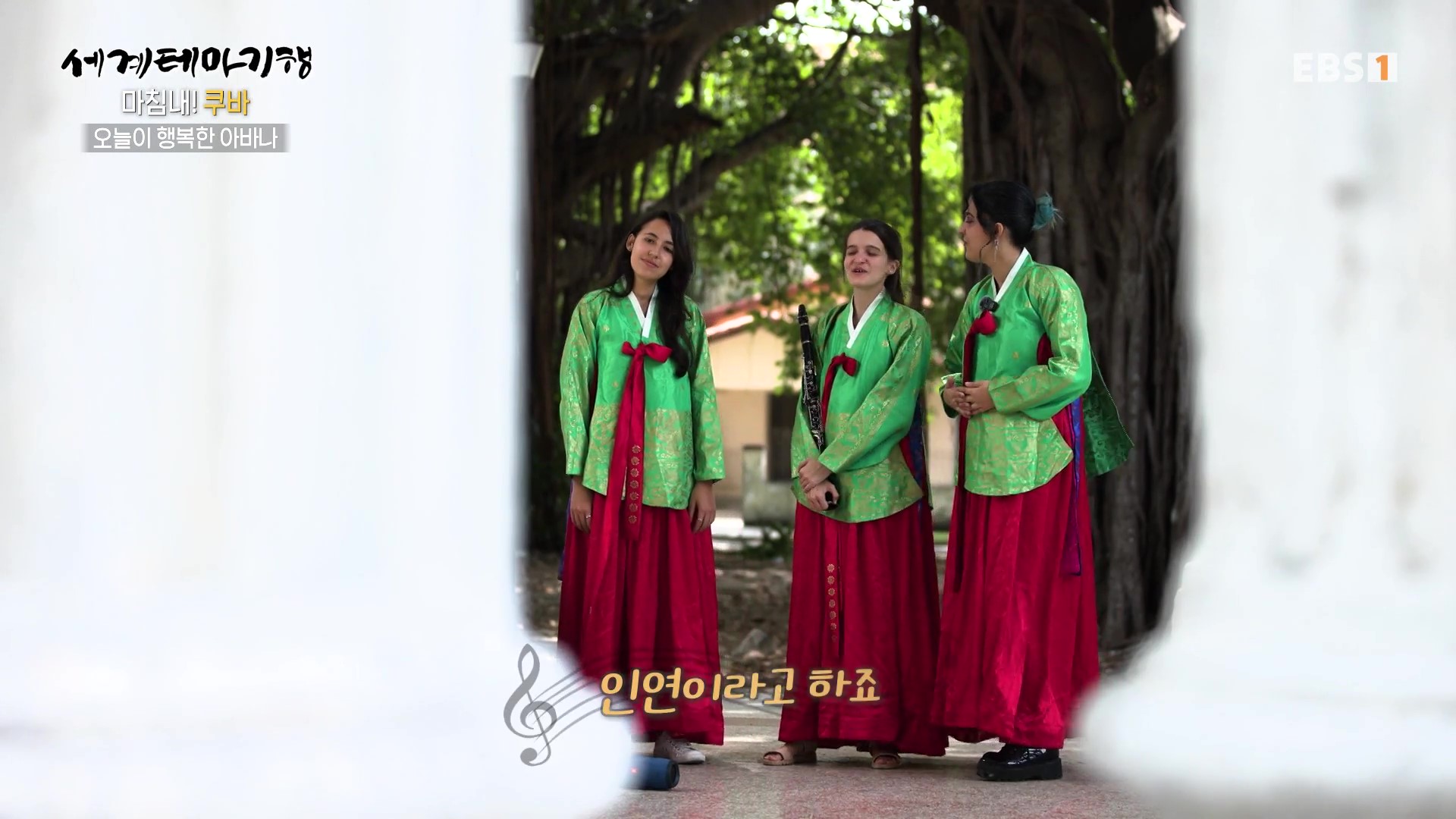수도 아바나 소재 쿠바한글학교는 지난 2월 한국-쿠바 수교이후 더욱 각광을 받는 곳입니다. 테마기행 해설자(안내자)인 정호현은 이곳 한글학교 교장입니다. 학생들은 쿠바인의 몸짓으로 아리랑을 부르네요. 학생들은 장구 치기도 좋아하는데 아리랑과 장구는 유튜브로 배웠다고 합니다. 2022년 문을 연 한글학교의 학생수는 120명으로 교사 5명은 현지인입니다. 학생들은 케이팝과 드라마에 빠져 스스로 한글공부를 했답니다. 독학으로 노래를 익혔다는 학생들은 한국방송사에서 촬영한다는 말에 한복을 곱게 차려입고 장구반주에 맞추어 가수 이선희의 “인연”을 멋지게 부릅니다.
