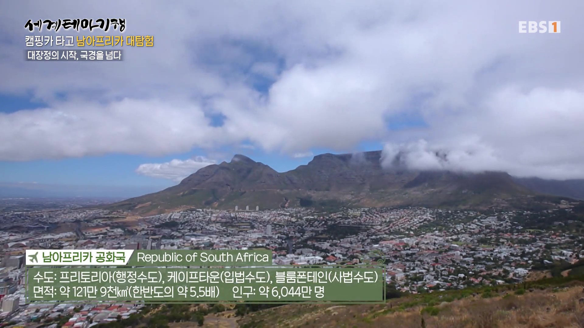 <EBS 세계테마기행>은 안방에 편안하게 앉아서 세계의 명소들을 체험할 수 있는 수준 높은 교양프로그램입니다. 각 방면에 걸쳐 다양한 지식을 가진 전문가가 출연해 실시하는 해설을 따라가노라면 실제로 해외여행을 하는 것 같은 착각에 빠지기도 합니다. 2024년 5월 하순(2024. 5. 20∼5. 23)에는 “세계테마기행, 캠핑카 타고 남아프리카 대탐험”편이 방영되었습니다. 이번 여행의 가이드(안내)는 캠핑카를 타고 세계 일주를 하는 정기현 여행가입니다.