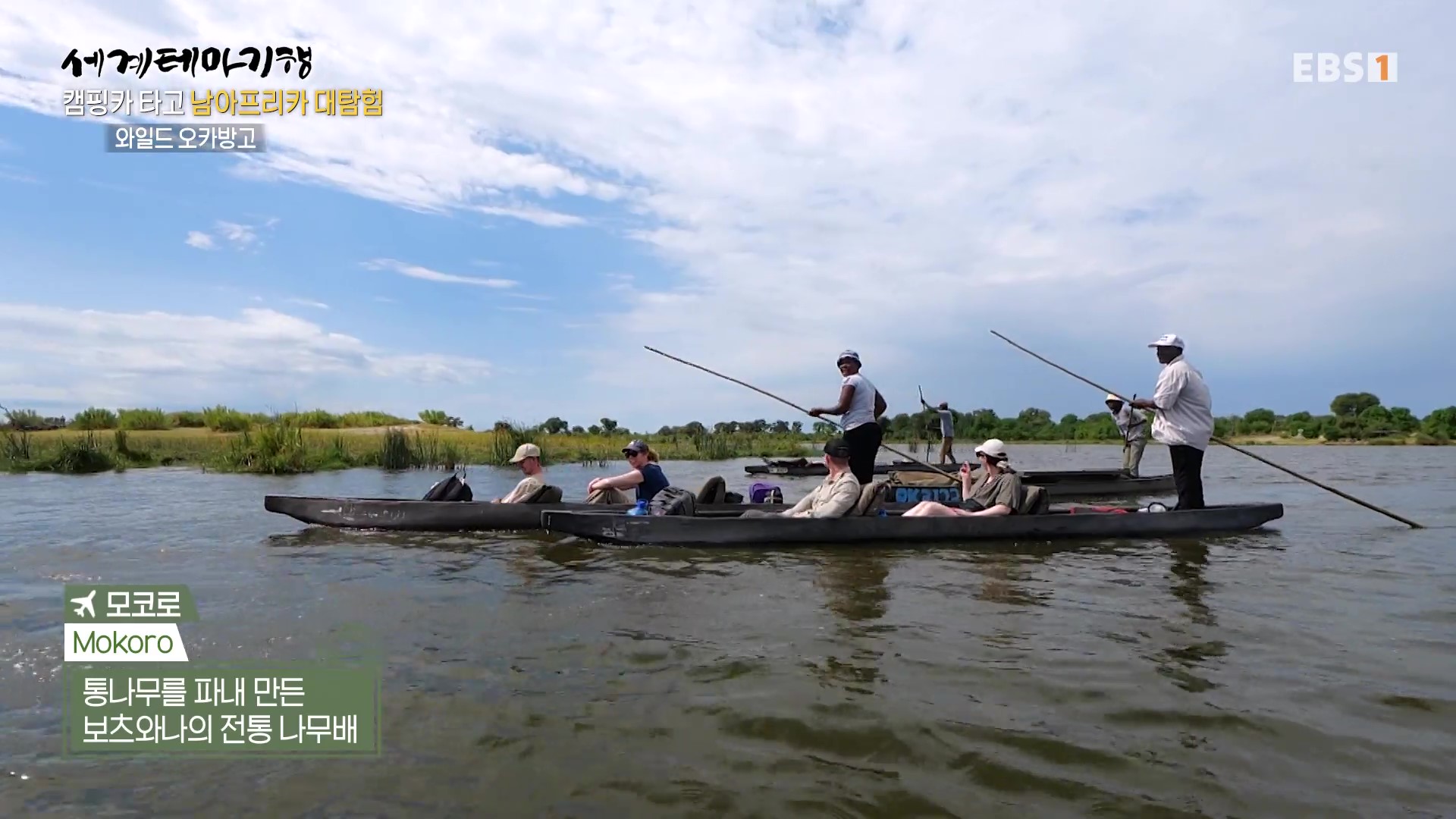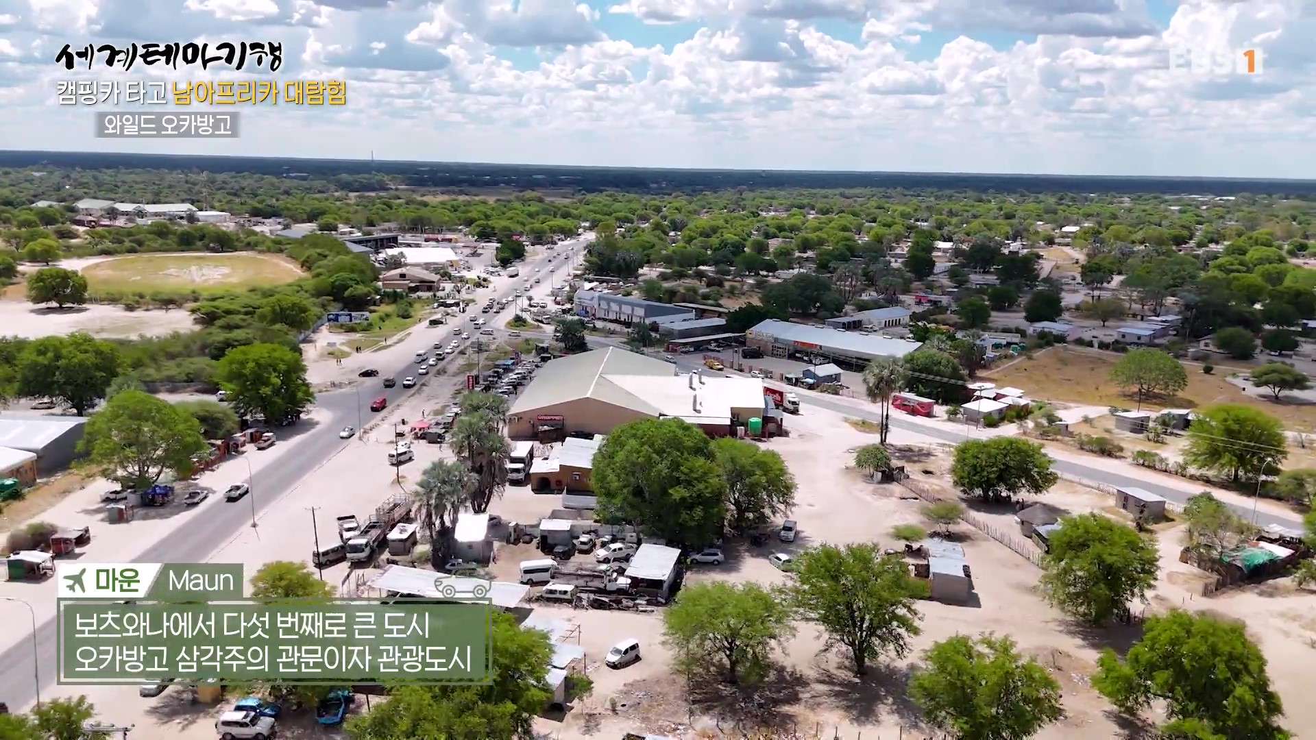 마운은 보츠와나 제5의 도시로 오카방고 삼각주의 관문 겸 관광도시입니다. 헬기를 타고 40분 동안 세계 최대의 내륙삼각주인 오카방고 삼각주를 돌아봅니다. 이곳은 동물의 천국인 거대한 습지를 형성해 동물들의 안식처입니다. 보츠와나 전통 나무배를 타고 하마, 코끼리를 만난 후 섬에 하선해 도보로 사파리 투어를 시작합니다. 산처럼 지은 개미집을 만났지만 현재 이곳은 몇 년째 계속되는 극심한 가뭄으로 인해 동물들을 거의 볼 수 없음이 안타깝습니다.