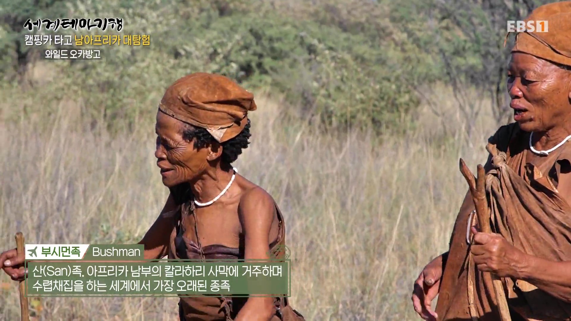 간지는 보츠와나 칼라하리 사막의 도시로 이곳 사막에 부시먼족이 살고 있습니다. 부시먼족은 수렵채집을 하는 세계에서 가장 오래된 종족입니다. 여성들은 숲에서 식용식물과 약초를 채집하며, 천연염색 뿌리를 찾아 가죽을 물들이면 가죽의 부식을 막고 방수까지 가능하답니다. 남성들은 활쏘기와 창던지기로 수렵을 합니다. 다만 지금은 동물보호차원에서 수렵이 금지되어 있답니다.