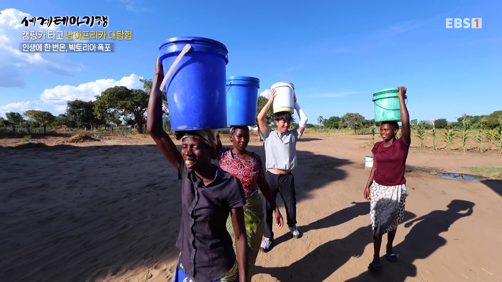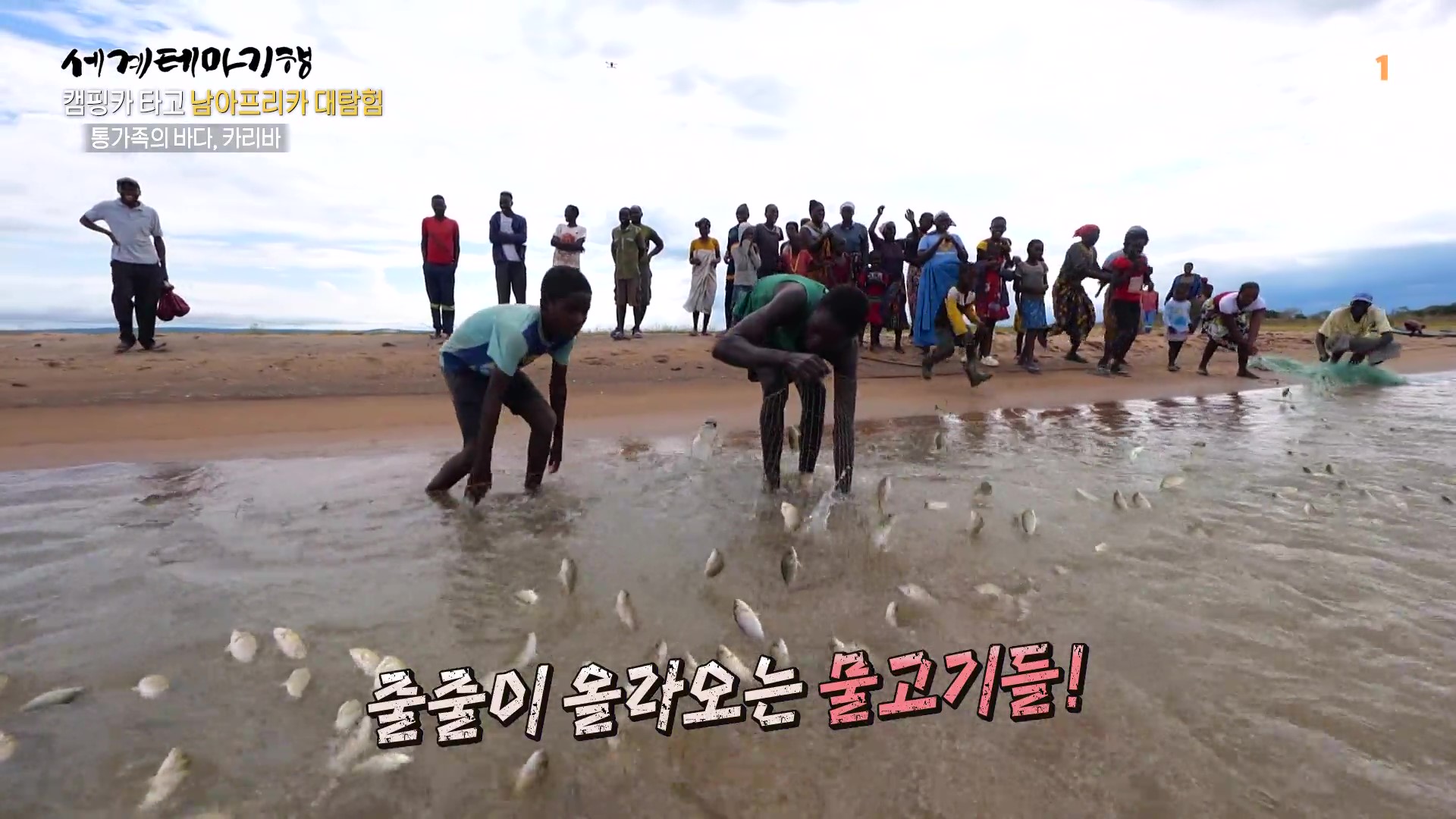 마테레레 마을은 현지인인 통가족이 사는 오지마을로 통가족은 잠베지강 연안에서 사는 부족입니다. 이들은 물고기를 잡아 팔거나 주식으로 먹는데, 조업은 그물을 던져 몰아가는 방식입니다. 그물에 많은 물고기들이 잡히자 마을 주민들은 잔치분위기입니다. 잡은 물고기는 마을 주민들에게 똑 같이 분배한다는군요. 주민들은 냉장고가 없어 잡은 물고기를 소금에 절여 말리거나 훈제를 합니다. 이날은 손님접대를 위해 염소 2마리를 잡아 푹 삶았는데, 염소고기는 특별한 날에만 먹는 특식이랍니다.