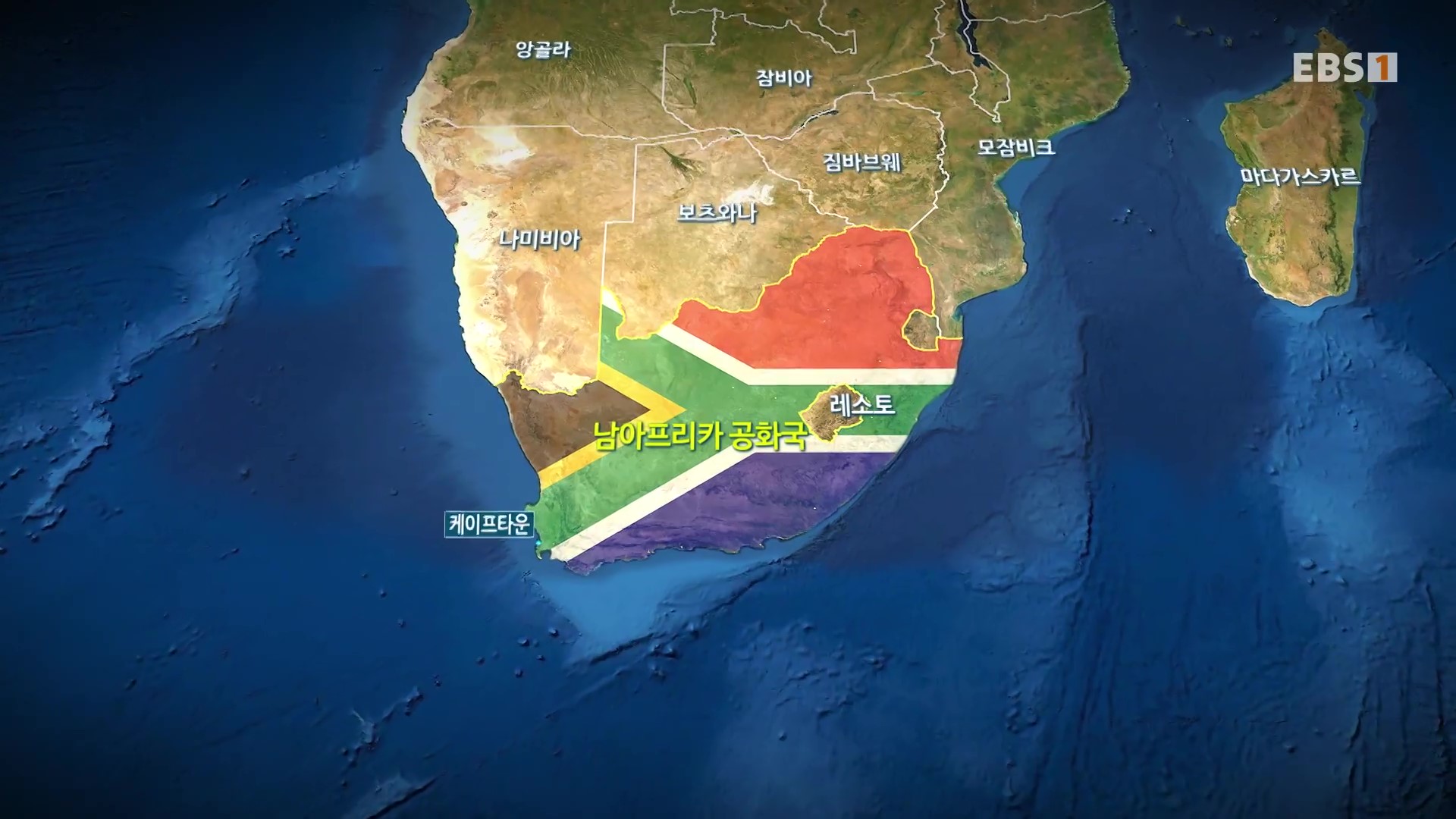 첫 여정은 남아프리카 공화국에서 시작합니다. 남아공의 국토면적은 한반도의 약 5.5배, 인구는 6,044만 명, 입법수도는 케이프타운입니다. 케이프타운은 아프리카의 관문도시로 온화한 지중해성 기후를 가지고 있어 유럽인이 즐겨 찾는 휴양지이기도 합니다. 이곳 테이블 마운틴 국립공원의 테이블산과 희망봉은 세계7대 자연경관에 지정된 명소입니다. 볼더스 비치는 아프리카에서 유일한 펭귄 서식지이지요.