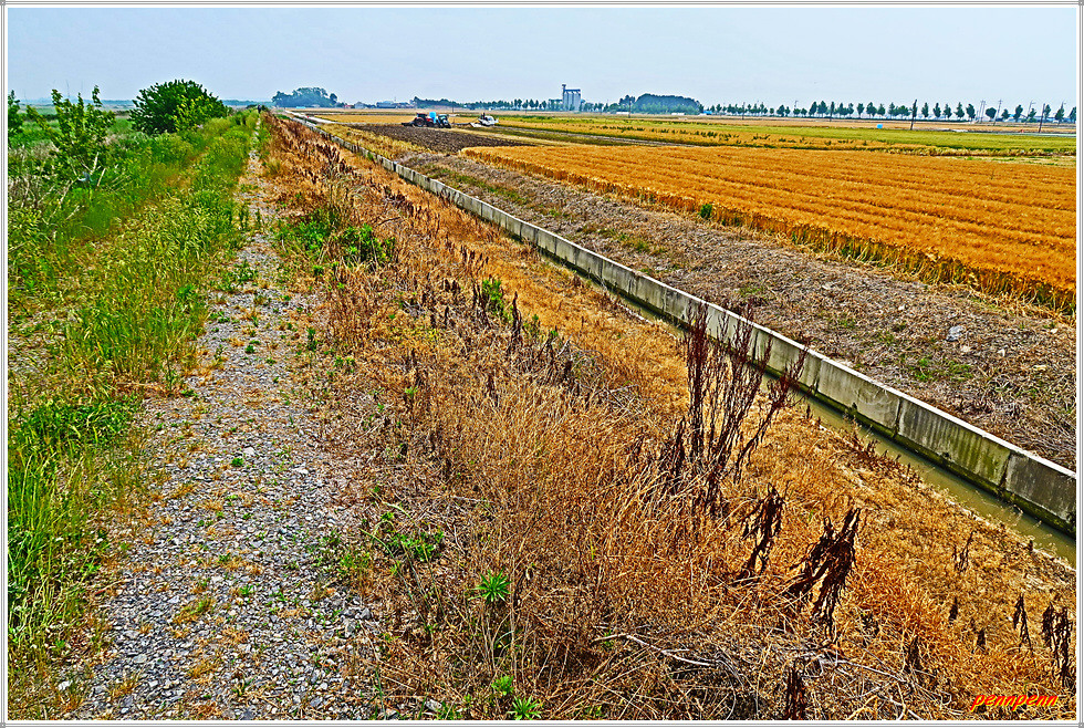 진봉면사무소 인근의 임마뉴엘 고사교회를 지나갑니다. 가뭄으로 인해 양파의 잎이 시들어 금년 농사가 걱정이로군요. 이제부터는 수로를 따라 걷습니다. 수로에서 낚시를 하는 강태공의 모습도 보입니다. 척박한 도로에서 자라는 앙증맞은 꽃(길뚝개꽃?)은 처음 보네요. 이앙기를 이용해 모내기를 하는 농부도 보입니다.