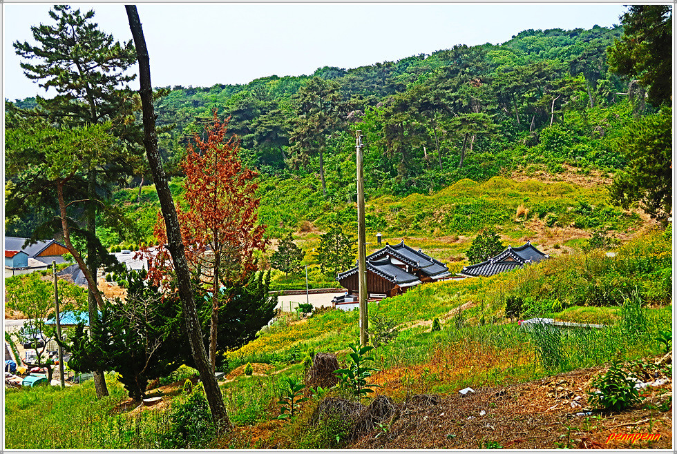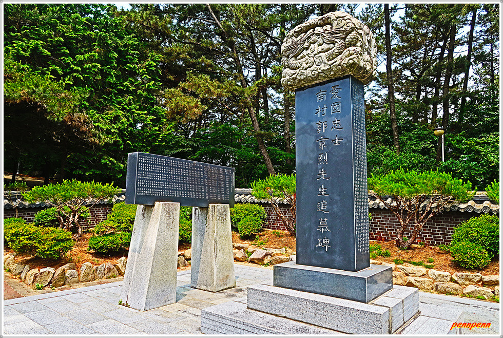 침목계단을 이용해 진봉산(73m) 숲속으로 진입합니다. 여기서 망해사까지는 1.3km인데 숲길이 정말 포근합니다. 두 번째 나무계단을 올라 노송숲을 지나면 망해사 전망대(망해대)입니다. 투박해 보이는 전망대에 오르면 김제를 알리는 영문입체글씨가 세워진 가운데 멀리 만경강 하류와 새만금 방면이 아련하게 보입니다. 전망대를 지난 갈림길에는 애국지사 남촌 곽경열 추모비, 인근 두곡서원 안내문이 보입니다. 두곡서원은 지도에도 표기되어 있지 않지만 조선초기 성리학자 강원기(1423-1498)의 공덕을 추모하기 위해 그의 후학들이 세운 서원입니다.